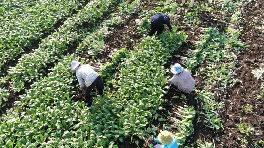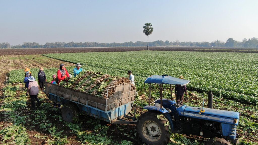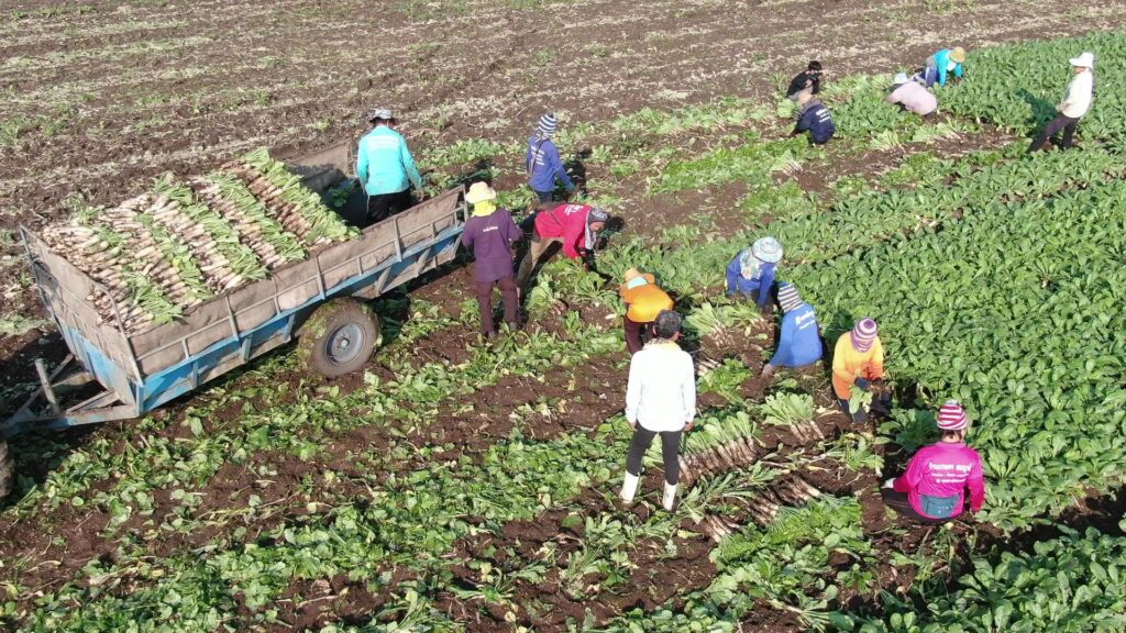 กลุ่มเกษตรกรแปลใหญ่ ผู้ปลูก “หัวไชเท้า” ตำบลโคกตูม อำเภอเมือง จังหวัดลพบุรี รวมกว่า 10 หมู่บ้าน ใช้เวลาว่างจากการเก็บเกี่ยวผลผลิตพืชไร่ และว่างเว้นจากการทำไร่ข้าวโพด มาปลูก “หัวไชเท้า” หรือ หัวผักกาด ซึ่งเป็นพืชระยะสั้น ใช้ระยะเวลาการเพาะปลูก เพียง 45-50 วัน ก็สามารถจะเก็บผลผลิตสู่ตลาดสร้างรายได้ ซึ่งเกษตรกรจะเลือกวางแผนในการเพาะปลูก เพื่อให้ผลผลิต ออกทันจำหน่ายก่อนถึงเทศกาลตรุษจีน ในแต่ละปี ซึ่งพื้นที่แห่งนี้ ผลผลิตจะถูกส่งไปยัง ตลาด 4 มุมเมือง และ ตลาดไทย เนื่องจากพื้นที่ตำบลโคกตูมถือเป็นแหล่งเพาะปลูกหัวไชเท้าแหล่งใหญ่ ในลำดับต้นๆ ของประเทศ ทำให้ทุกแปลงปลูกต้องเพิ่มคนงาน เร่งเก็บผลผลิตส่งสู่ตลาด ส่งผลให้เกิดการจ้างงานสร้างรายได้ให้แก่เกษตรกร เนื่องจากขณะนี้ หัวไชเท้ากำลังเป็นที่ต้องการของตลาด โดยแต่ละวันจะมีหัวไชเท้าออกสู่ตลาด เฉลี่ย วันละ 80 – 100 ตันต่อวัน ซึ่งต่างจากช่วงเวลาปกติ ที่ไม่ตรงกับเทศกาลตรุษจีน ซึ่งจะมีผลผลิตออกสู่ตลาด เพียงวันละ 30 ตันต่อวัน