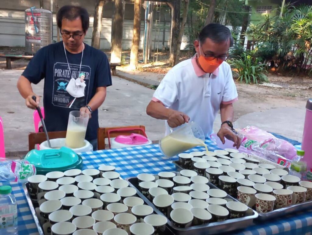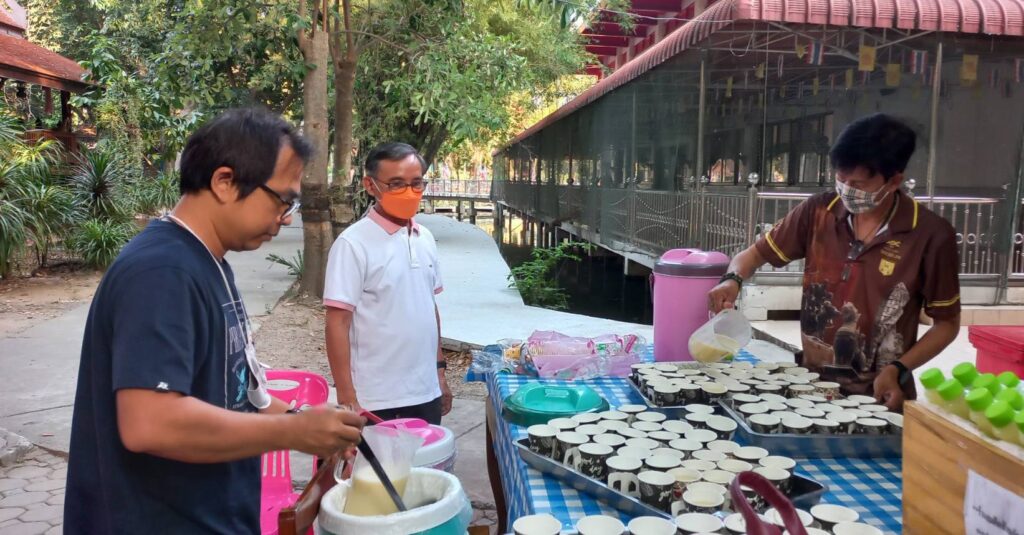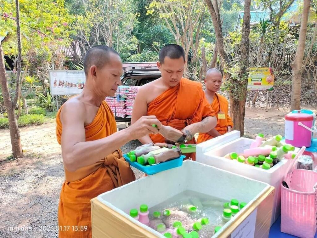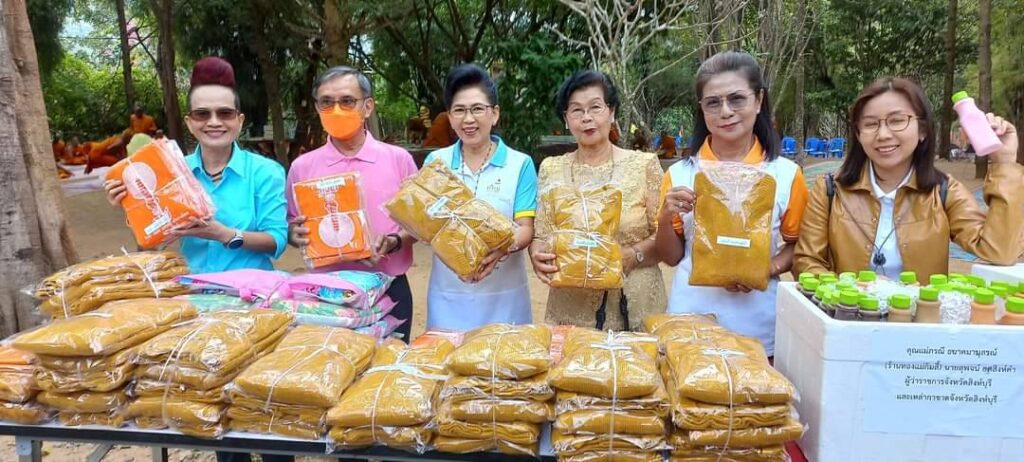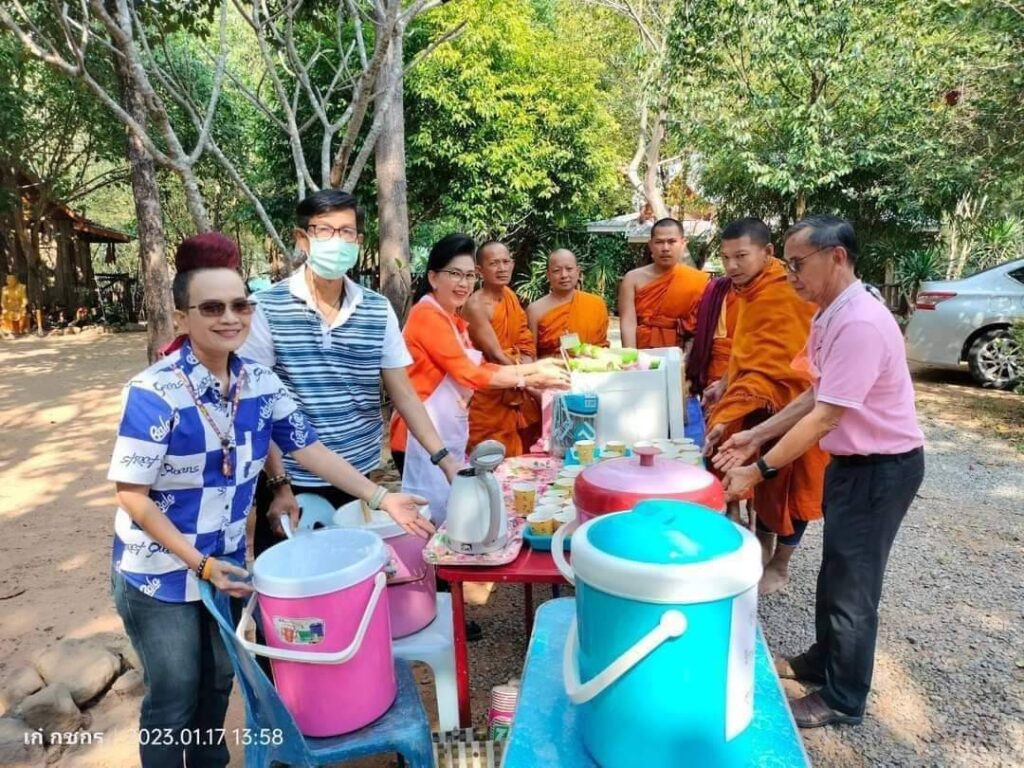 นายอวยชัย นางสมคิด ปูทอง ร้านสมคิดสังฆภัณฑ์จังหวัดสิงห์บุรี คุณป้อม วรากุล คุณลดา วีระพงษ์ เป็นสะพานบุญนำพี่ๆน้องๆผู้ใจบุญ ร่วมทำบุญเยี่ยมให้กำลังใจ พระนวกะ 99 รูป ในโครงการบรรพชาอุปสมบทหมู่ ถวายพระพรแด่สมเด็จพระเจ้าลูกเธอ เจ้าฟ้าพัชรกิติยาภา นเรนทิราทิพยวดี กรมหลวงราชสาริณี สิริพัชรมหาวัชรราชธิดา ให้พระองค์ทรงหายพระประชวรเร็วไว