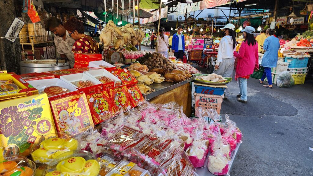 ซึ่งนอกจาก หมู เป็ด ไก่ และผักสด ที่มีการปรับราคาขึ้นแล้ว ยังมีผลไม้มงคลอีกหลายชนิดที่มีการปรับราคาสูงโดยเฉพาะกล้วยหอม และ ส้ม ซึ่งผลไม้ทั้ง 2 ชนิด ถือว่าเป็นผลไม้ที่คนนิยมซื้อไปไหว้เจ้าและบรรพบุรุษในช่วงเทศกาลตรุษจีน โดยที่กล้วยหอมตอนนี้ขายอยู่ที่หวีละ 100 บาท ถึง 120 บาท ส้ม ราคากิโลละ 70-90 บาท รวมถึงขนมเข่งขนมเทียน ก็มีการปรับราคาขึ้น เนื่องจากวัตถุดิบมีการปรับราคาขึ้นทำให้ต้นทุนเพิ่ม ทำให้ประชาชนต้องซื้อเท่าที่จำเป็น เพื่อครบเครื่องไหว้ เพื่อความเป็นมงคลเนื่องในเทศกาลตรุษจีน
