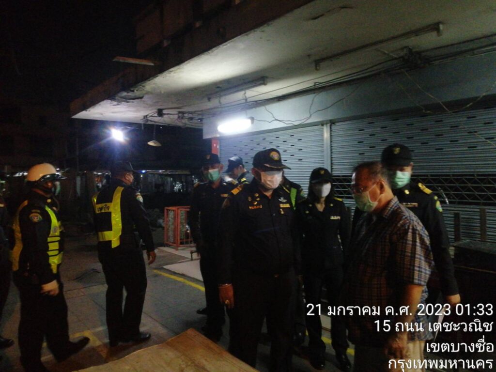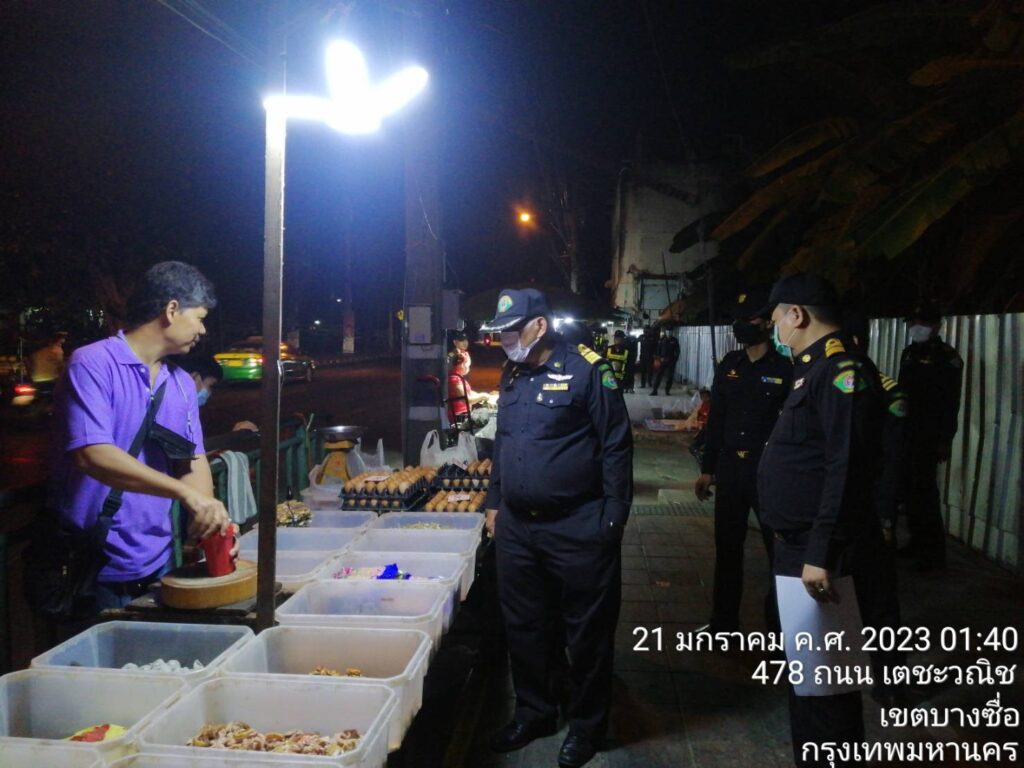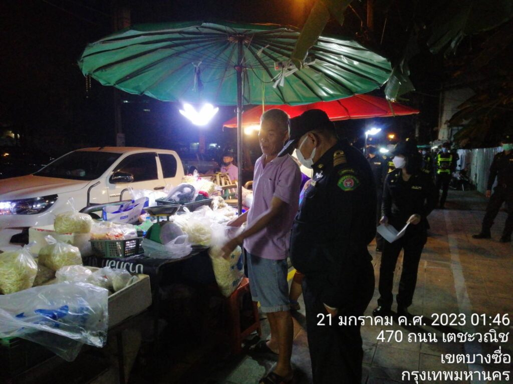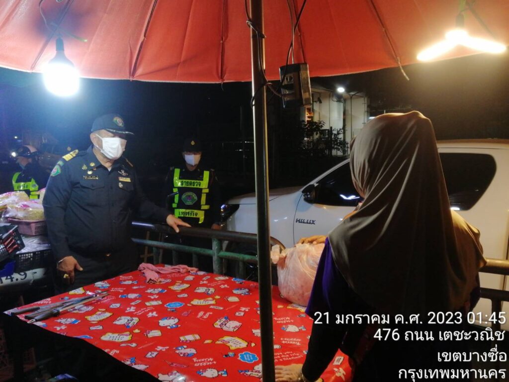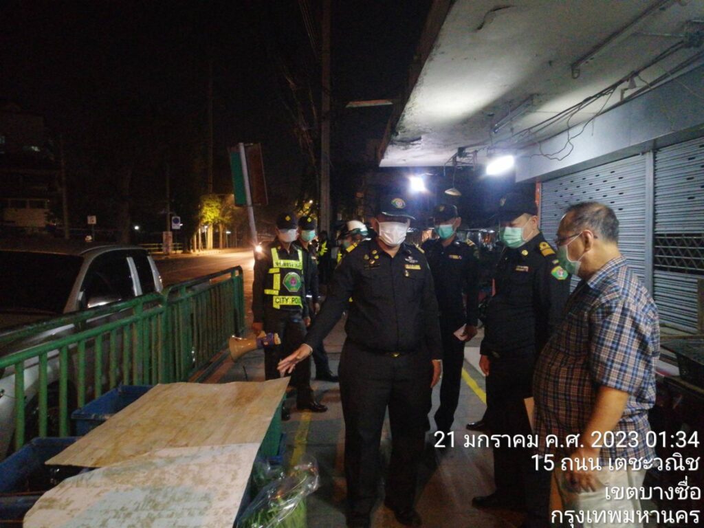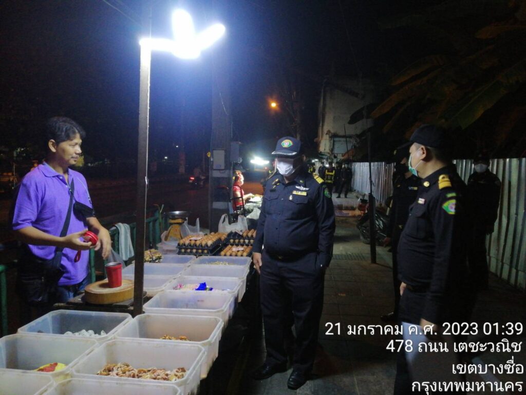 วันเสาร์ที่ 21 มกราคม 2566 เวลา 02.00 น. : นายสรสิช เหลืองรุ่งเกียรติ ผู้อำนวยการเขตบางซื่อ มอบหมายให้ นายคณิต ชุมช่วย หัวหน้าฝ่ายเทศกิจ (บางซื่อ5) จัดเจ้าหน้าที่ชุดสายตรวจเทศกิจ 251,252,253 ร่วมกันปฏิบัติหน้าที่ ตรวจความเป็นระเบียบเรียบร้อย และจัดระเบียบแผงการค้า และมาร์คจุดทำการค้าให้แก่ผู้ค้าให้อยู่ในแนวเส้น บริเวณจุดผ่อนผันทำการค้าตลาดประจวบ ให้เป็นไปตามหลักเกณฑ์ที่กำหนดไว้ และกำชับเรื่องการรักษาความสะอาดหลังจากทำการค้าเสร็จเรียบร้อย พร้อมให้เจ้าหน้าที่เทศกิจอำนวยความสะดวกและจัดการจราจร