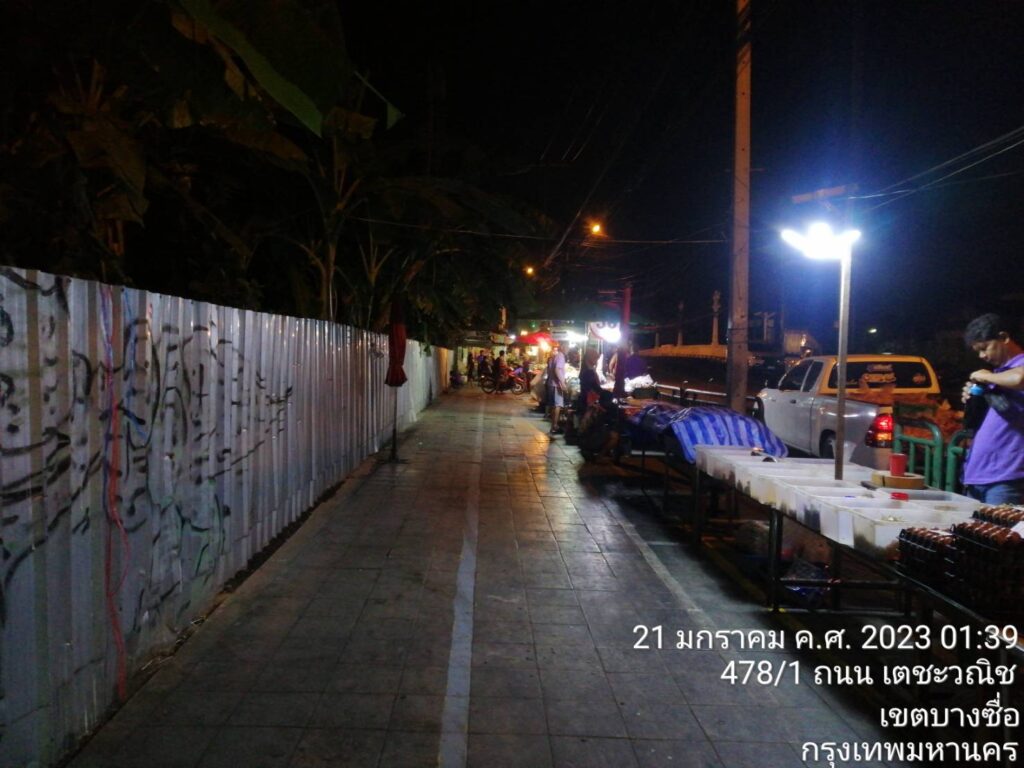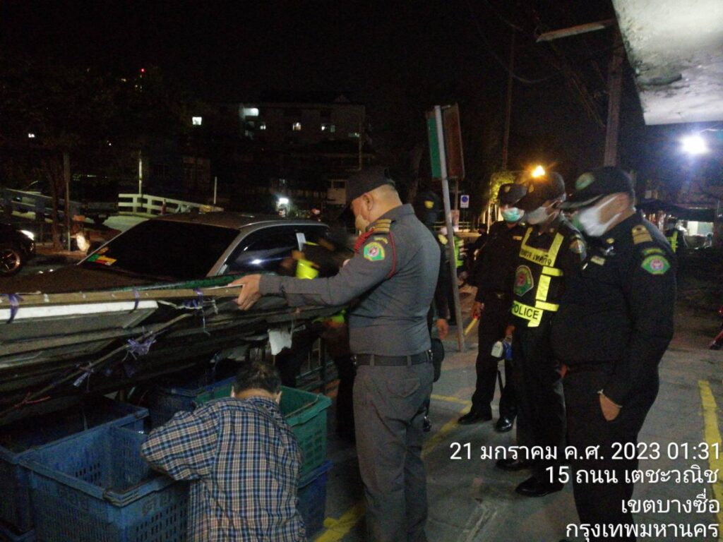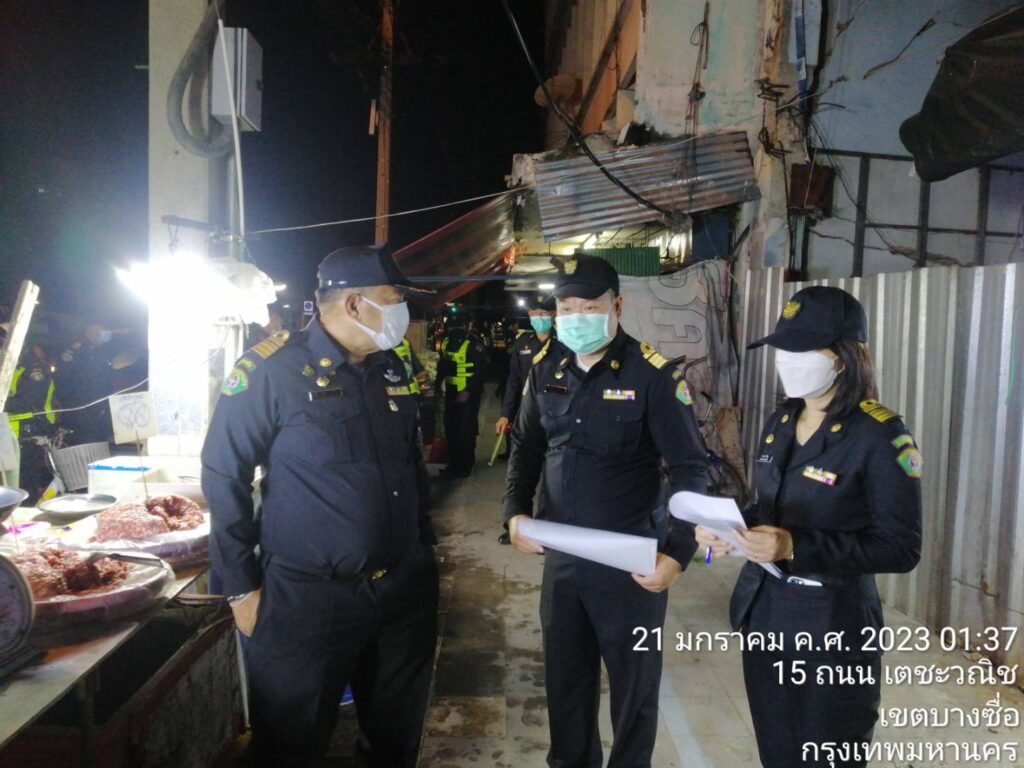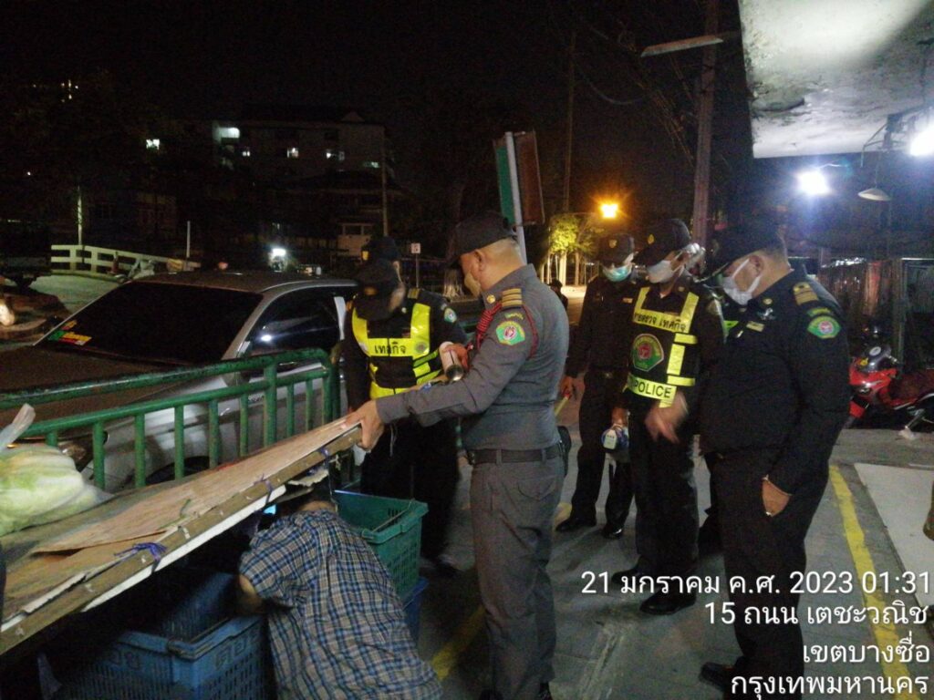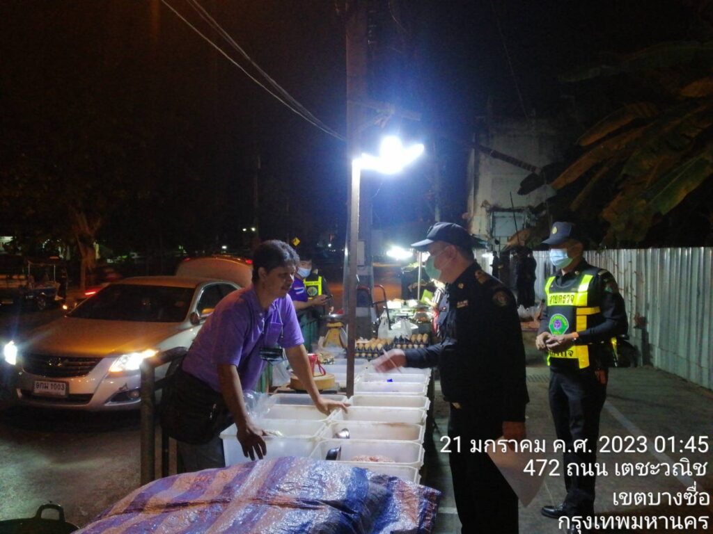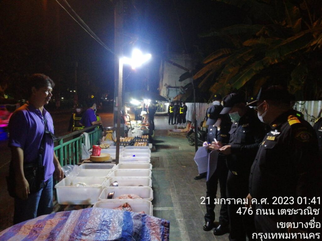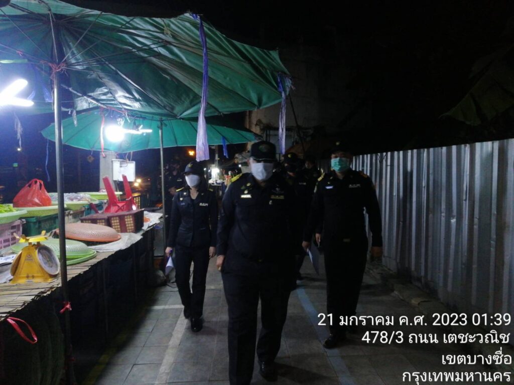 วันเสาร์ที่ 21 มกราคม 2566 เวลา 02.00 น. : นายสรสิช เหลืองรุ่งเกียรติ ผู้อำนวยการเขตบางซื่อ มอบหมายให้ นายคณิต ชุมช่วย หัวหน้าฝ่ายเทศกิจ (บางซื่อ5) จัดเจ้าหน้าที่ชุดสายตรวจเทศกิจ 251,252,253 ร่วมกันปฏิบัติหน้าที่ ตรวจความเป็นระเบียบเรียบร้อย และจัดระเบียบแผงการค้า และมาร์คจุดทำการค้าให้แก่ผู้ค้าให้อยู่ในแนวเส้น บริเวณจุดผ่อนผันทำการค้าตลาดประจวบ ให้เป็นไปตามหลักเกณฑ์ที่กำหนดไว้ และกำชับเรื่องการรักษาความสะอาดหลังจากทำการค้าเสร็จเรียบร้อย พร้อมให้เจ้าหน้าที่เทศกิจอำนวยความสะดวกและจัดการจราจร