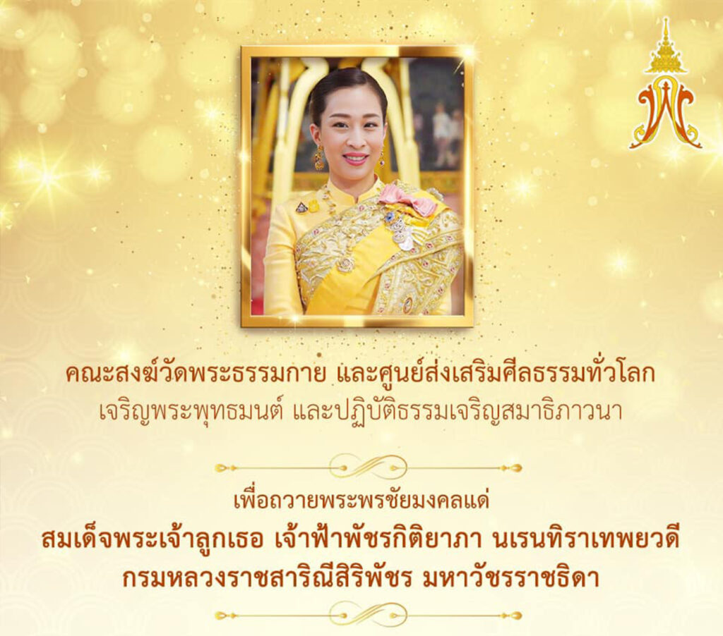 วันที่ 22 มกราคม 2566 พสกนิกรชาวพุทธร่วมพิธีตักบาตรพระธรรมยาตราวัดพระธรรมกาย จ.ปทุมธานี 1,139 รูป ในโครงการธรรมยาตรา กตัญญูบูชา มหาปูชนียาจารย์ พระมงคลเทพมุนี (สด จนฺทสโร) พระผู้ปราบมาร อนุสรณ์สถาน 7 แห่ง ปีที่ 11 ถวายเป็นพระราชกุศล และถวายพระพรชัยมงคลแด่สมเด็จพระเจ้าลูกเธอ เจ้าฟ้าพัชรกิติยาภา นเรนทิราเทพยวดี กรมหลวงราชสาริณีสิริพัชร มหาวัชรราชธิดา ให้พระองค์ทรงหายจากพระอาการประชวรโดยเร็ววัน ที่อนุสรณ์สถาน ลำดับที่ 4 สถานที่เกิดด้วยกายธรรม ที่ วัดโบสถ์บน ต.บางคูเวียง อ.บางกรวย จ.นนทบุรี
