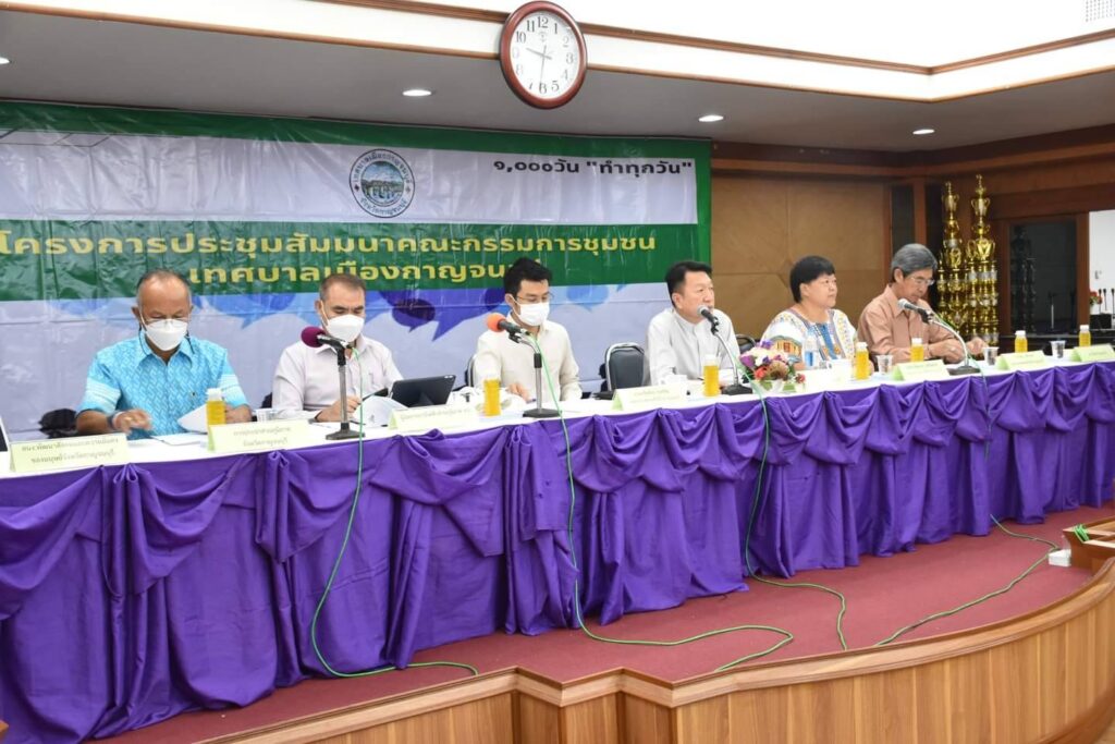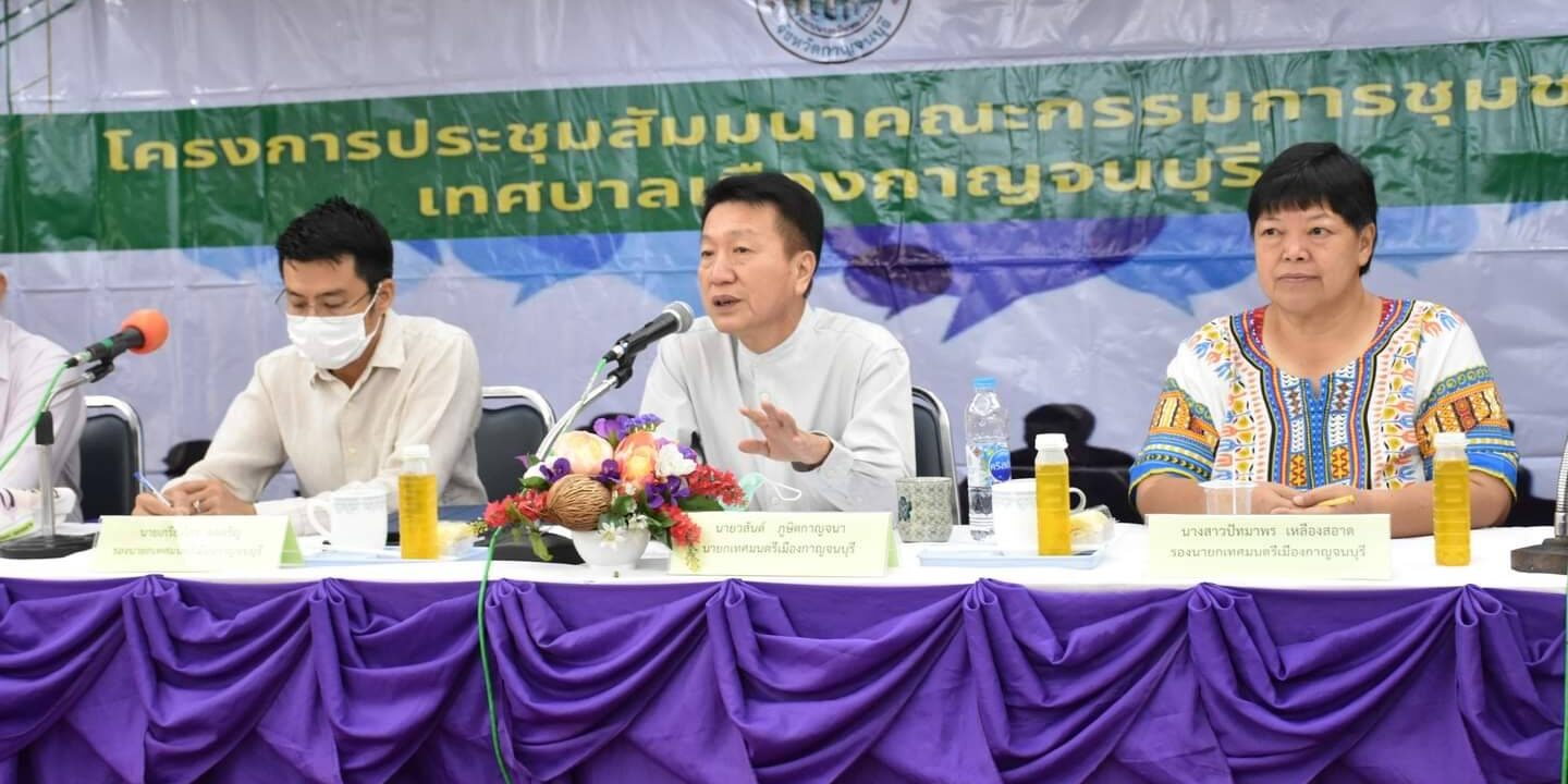 นายวสันต์ ภูษิตกาญจนา นายกเทศมนตรีเมืองกาญจนบุรี เป็นประธานใน “การประชุมสัมมนาคณะกรรมการชุมชนเทศบาลเมืองกาญจนบุรี ครั้งที่ 1 /2566 ” พร้อมด้วยนายเกรียงไกร จงเจริญ นางสาวปัทมาพร เหลืองสะอาด นายอุดม เหลืองสด รองนายกเทศมนตรี คณะผู้บริหาร สมาชิกสภาเทศบาล หัวหน้าส่วนราชการ ตัวแทนสำนักงานพัฒนาสังคมและความมั่นคงของมนุษย์จังหวัดกาญจนบุรี ตัวแทนการไฟฟ้าส่วนภูมิภาคจังหวัดกาญจนบุรี ตัวแทนการประปาส่วนภูมิภาค สาขากาญจนบุรี ตัวแทนสถานีตำรวจภูธรเมืองกาญจนบุรี และคณะกรรมการชุมชนในเขตเทศบาลฯ เข้าร่วมประชุมโดยพร้อมเพรียงกัน