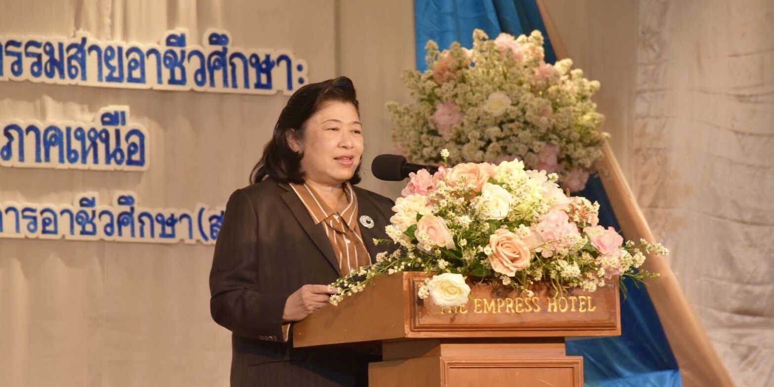 วันที่ 26 มกราคม 2566 สำนักงานการวิจัยแห่งชาติ (วช.) กระทรวงการอุดมศึกษา วิทยาศาสตร์ วิจัยและนวัตกรรม (อว.) ร่วมกับ สำนักงานคณะกรรมการการอาชีวศึกษา (สอศ.) จัดพิธีมอบรางวัลติดดาวผลงานเด่นอาชีวศึกษา ในกิจกรรม “การบ่มเพาะเพื่อเพิ่มศักยภาพการพัฒนาสิ่งประดิษฐ์และนวัตกรรมสายอาชีวศึกษา : Smart Invention & Innovation ประจำปี 2566 ภาคเหนือ” วันสุดท้าย โดย ดร.วิภารัตน์ ดีอ่อง ผู้อำนวยการสำนักงานการวิจัยแห่งชาติ (วช.) เป็นประธาน เพื่อส่งเสริมและสนับสนุนการพัฒนาศักยภาพของนักเรียน นักศึกษาสายอาชีวศึกษาให้เกิดแรงจูงใจในการคิดค้นผลงานประดิษฐ์และนวัตกรรมเพื่อใช้ในประเทศ ณ โรงแรมดิเอ็มเพรส จังหวัดเชียงใหม่