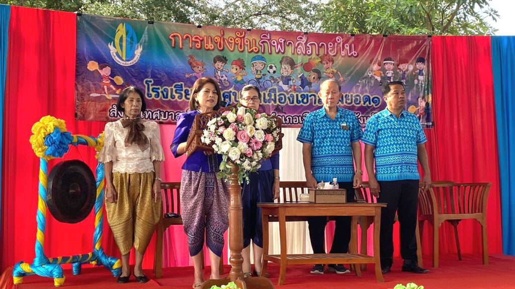 ที่ อาคาร โดมอเนกประสงค์ โรงเรียนเทศบาลเมืองเขาสามยอด 1 อ.เมือง จ.ลพบุรี นางสายใจ เลิศวิริยะประภา นายกเทศมนตรีเมืองเขาสามยอด ได้เป็นประธาน ในพิธีเปิดการแข่งขันภายใน ต้านยาเสพติด ประจำปี 2566 ของโรงเรียนเทศบาลเมืองเขาสามยอด 1 สังกัดกองการศึกษาเทศบาลเมืองเขาสามยอด อำเภอเมืองลพบุรี จังหวัดลพบุรี โดยมี คณะครู นักเรียน และผู้ปกครอง เข้าร่วมกิจกรรมกว่า 800 คน