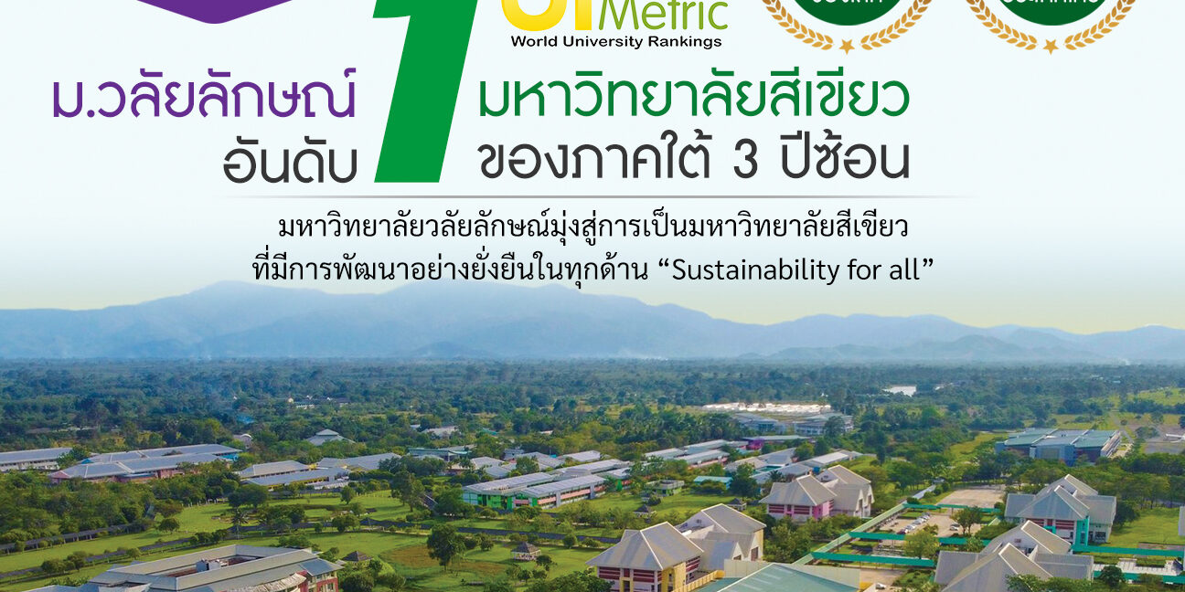 เมื่อเร็วๆนี้ UI GreenMetric World University Ranking ได้ประกาศผลการจัดอันดับ มหาวิทยาลัยสีเขียวโลก ปี 2022 จากจำนวน 1,050 มหาวิทยาลัยทั่วโลกที่เข้าร่วม ผลปรากฏว่า มหาวิทยาลัยวลัยลักษณ์ ยังคงได้รับการจัดอันดับ เป็นอันดับ 1 มหาวิทยาลัยสีเขียวของภาคใต้ 3ปีติดต่อกัน และขยับมาเป็นอันดับที่ 7 ของประเทศและอันดับที่ 111 ของโลก