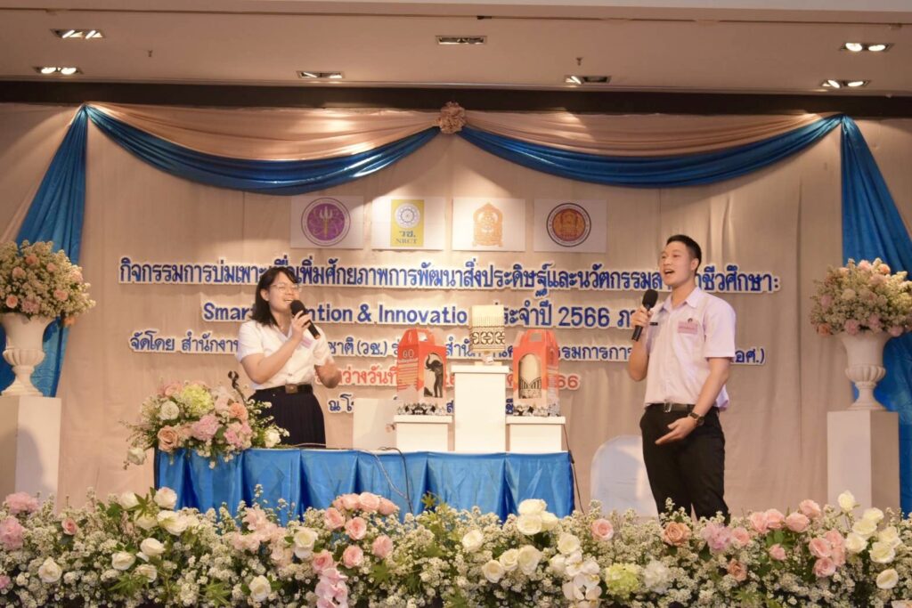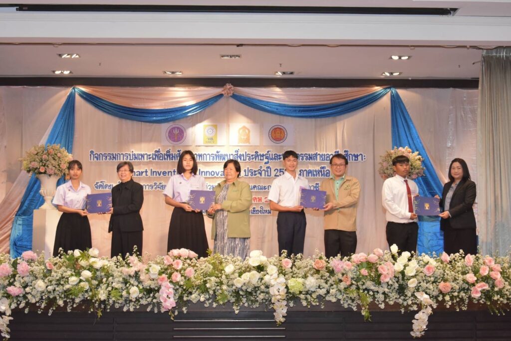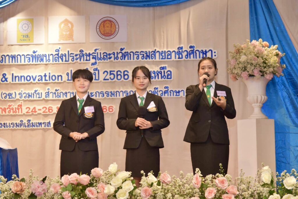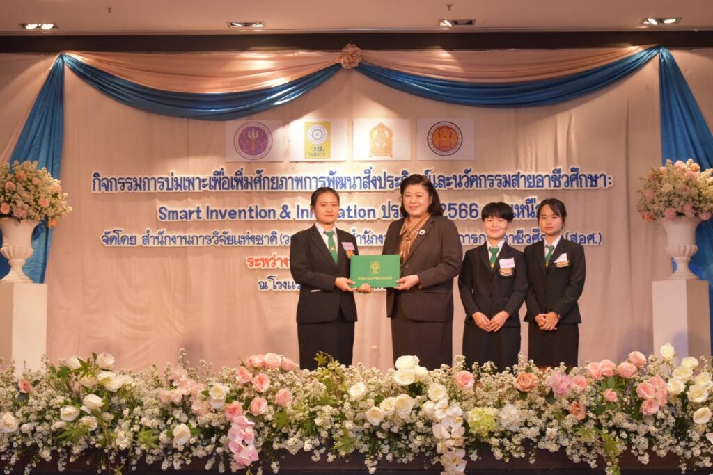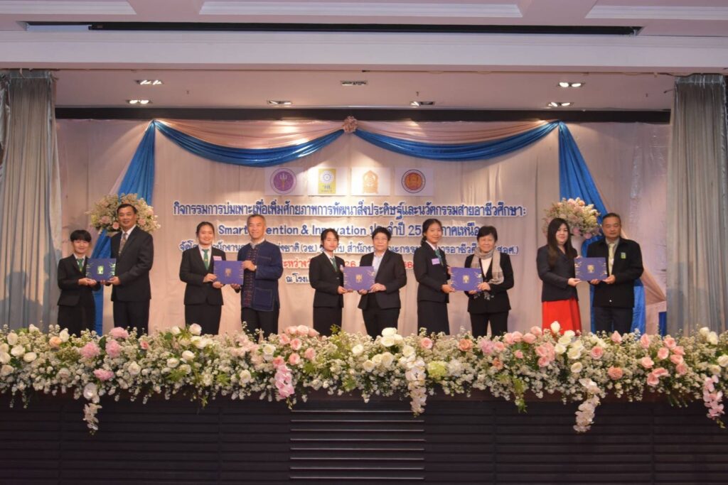 วันที่ 26 มกราคม 2566 สำนักงานการวิจัยแห่งชาติ (วช.) กระทรวงการอุดมศึกษา วิทยาศาสตร์ วิจัยและนวัตกรรม (อว.) ร่วมกับ สำนักงานคณะกรรมการการอาชีวศึกษา (สอศ.) จัดพิธีมอบรางวัลติดดาวผลงานเด่นอาชีวศึกษา ในกิจกรรม “การบ่มเพาะเพื่อเพิ่มศักยภาพการพัฒนาสิ่งประดิษฐ์และนวัตกรรมสายอาชีวศึกษา : Smart Invention & Innovation ประจำปี 2566 ภาคเหนือ” วันสุดท้าย โดย ดร.วิภารัตน์ ดีอ่อง ผู้อำนวยการสำนักงานการวิจัยแห่งชาติ (วช.) เป็นประธาน เพื่อส่งเสริมและสนับสนุนการพัฒนาศักยภาพของนักเรียน นักศึกษาสายอาชีวศึกษาให้เกิดแรงจูงใจในการคิดค้นผลงานประดิษฐ์และนวัตกรรมเพื่อใช้ในประเทศ ณ โรงแรมดิเอ็มเพรส จังหวัดเชียงใหม่