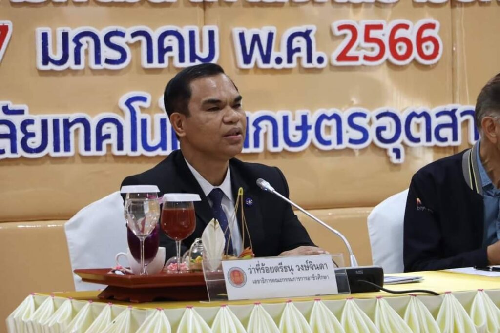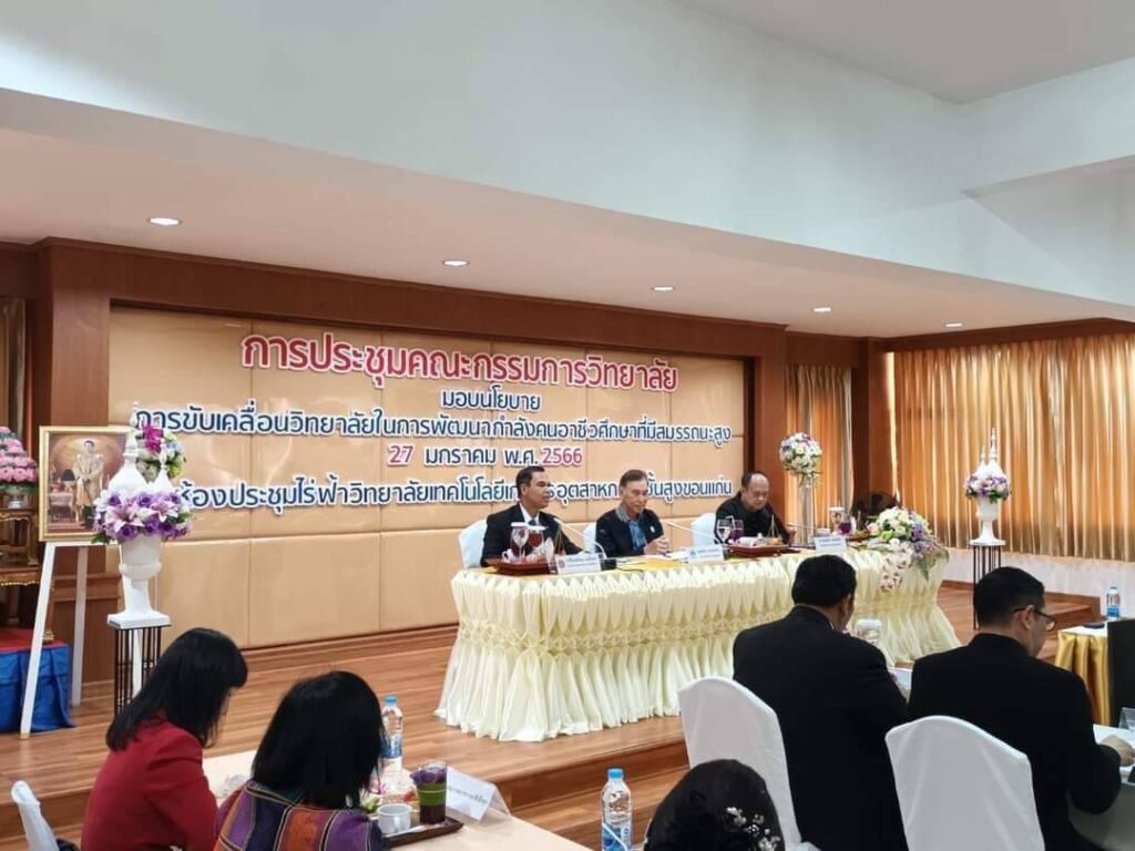โดยว่าที่ร้อยตรีธนุ วงษ์จินดา เลขาธิการคณะกรรมการการอาชีวศึกษา ได้กล่าวขอบคุณกลุ่มมิตรผล ที่ได้ร่วมขับเคลื่อนนโยบายด้านการจัดการอาชีวศึกษาทวิภาคีของรัฐมนตรีว่าการกระทวงศึกษาธิการ โดยสำนักงานคณะกรรมการการอาชีวศึกษาได้กำหนดให้ผู้บริหารสถานศึกษาอาชีวศึกษาต้องร่วมมือกับภาคเอกชนในการจัดการศึกษาให้มากยิ่งขึ้นเนื่องจากสถานประกอบการมีทรัพยากรที่มีความทันสมัยจำนวนมาก จึงต้องมีการบูรณาการการใช้ประโยชน์ร่วมกัน เพื่อผลิตและพัฒนากำลังคนสมรรถนะสูงอย่างมีคุณภาพและตอบโจทย์ความต้องการของประเทศ โดยวิทยาลัยเทคโนโลยีเกษตรอุตสาหกรรมชั้นสูงขอนแก่น มีความร่วมมือกับกลุ่มมิตรผล พัฒนาผู้เรียนอาชีวศึกษาให้มีสมรรถนะในการใช้เทคโนโลยีและนวัตกรรมสมัยใหม่ทางด้านเกษตรอุตสาหกรรม อาทิ การใช้โดรนเพื่อการเกษตร ในการจัดการฟาร์ม และเพิ่มมูลค่าให้กับผลผลิตทางการเกษตรต่อไป