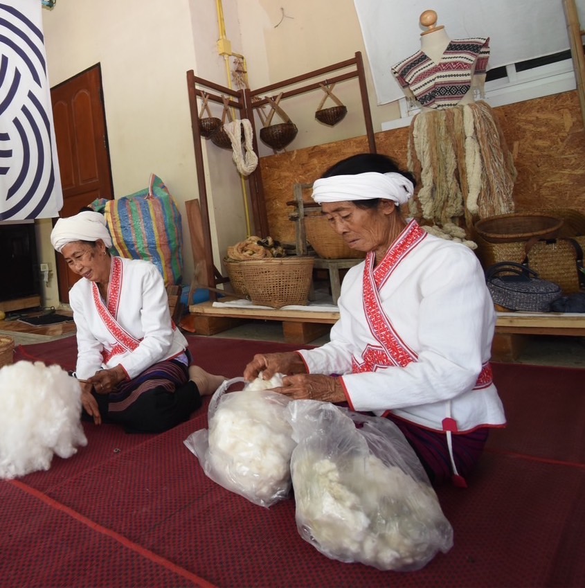 สำหรับผลิตภัณฑ์ที่ประสบผลสำเร็จจากกระบวนการยกระดับการสร้างสรรค์ ที่ (วช.) ได้ลงพื้นที่ตรวจเยี่ยมการดำเนินงานภายใต้โครงการ KOYORI Project ในครั้งนี้ ได้มีเป้าหมายในการติดตามพัฒนาการและการเพิ่มทักษะทางฝีมือ ในรูปแบบผลิตภัณฑ์ที่สร้างสรรค์ โดยในกลุ่มผลิตภัณฑ์ Aujaa’ Craft จากศูนย์บริการคนพิการออทิสติกจังหวัดเชียงใหม่ สามารถส่งเสริมให้สมาชิกที่เป็นผู้พิการออทิสติกและผู้ปกครองสร้างรายได้จากทักษะการย้อมสีจากเส้นฝ้ายเพื่อใช้ในงานถัก ภายใต้แนวคิด “ความงามในความไม่สมบูรณ์”