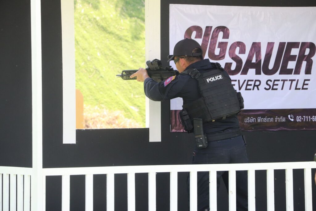 ผกก.ต่อต้านฯ บก.สปพ.,พ.ต.ท.อาทิตย์ วงษ์จันนา รอง ผกก.ต่อต้านฯ บก.สปพ.,พ.ต.ต.กฤษฎา พรหมศรี ผบ.ร้อย ปพ.1 บก.สปพ.นำกำลัง ข้าราชการตำรวจกองกำกับการต่อต้านการก่อการร้าย บก.สปพ. เข้าร่วมการแข่งขันกีฬายิงปืนในงาน SigSauer Day 2023 ณ สนามยิงปืน TACTICS and GUN PATTAYA