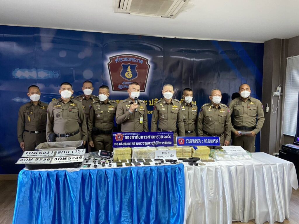 พร้อมด้วยของกลาง 1.ยาเสพติดให้โทษประเภท 1 (ยาบ้า) จำนวนประมาณ 200,000 เม็ด,2.ยาเสพติดให้โทษประเภท 1 (ไอซ์) น้ำหนักประมาณ 6.33 กิโลกรัม,3.อาวุธปืนพกสั้นกึ่งอัตโนมัติ พร้อมเครื่องกระสุน จำนวน 3 กระบอก,4. รถยนต์ จำนวน 6 คัน และ5.รถจักรยานยนต์ จำนวน 3 คัน