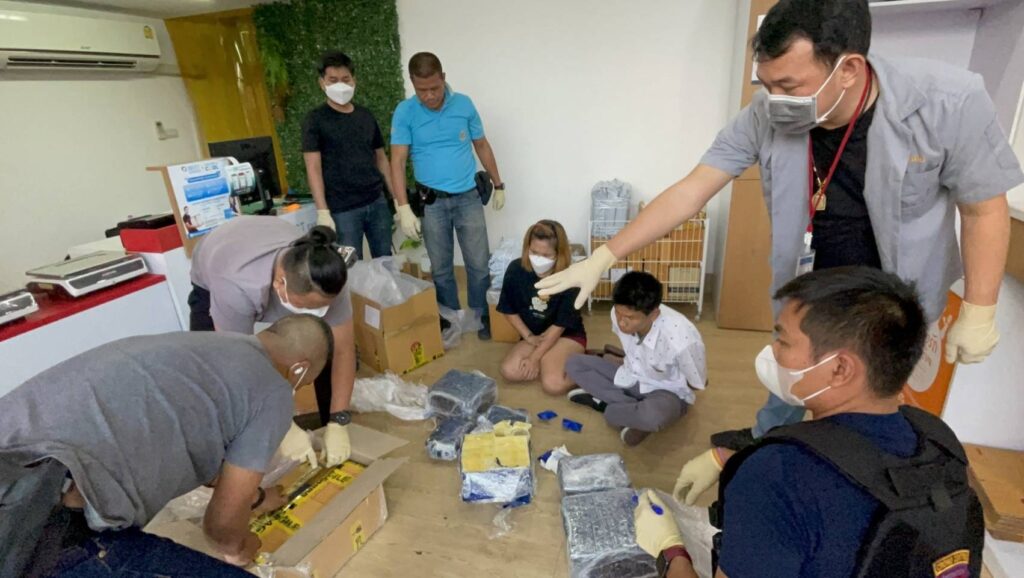 เจ้าหน้าที่ตำรวจได้สืบสวนติดตามเครือข่ายนายวัลลภ หรือบังมัส เรื่อยมา จนพบว่าเครือข่ายดังกล่าวนี้ยังไม่ได้หยุดความเคลื่อนไหว พบข้อมูลทางการสืบสวนเชื่อว่ายังมีพฤติกรรมลักลอบจำหน่ายยาเสพติดโดยการส่งพัสดุกระจายยาเสพติดไปทางจังหวัดภาคใต้อยู่ จึงได้เฝ้าติดตามพฤติกรรมของเครือข่ายดังกล่าว จนกระทั่งเมื่อวันที่ 24 มกราคม 2566 พบกลุ่มเครือข่ายยาเสพติดนี้ได้ใช้รถยนต์ตู้ ขนกล่องพัสดุ กำลังจะไปส่งร้านพัสดุ ย่านนวลจันทร์ เจ้าหน้าที่ตำรวจจึงแสดงตัวเข้าตรวจสอบ ปรากฏว่าภายในกล่องพัสดุเป็นยาบ้า จำนวน 200,000 เม็ด และไอซ์ จำนวน 2 กิโลกรัม โดยกล่องพัสดุระบุชื่อและที่อยู่ผู้รับในพื้นที่จังหวัดทางภาคใต้ และทำการจับกุมนายถาวรฯ,นายเปเล่ฯ และน.ส.สุพรรณีฯ ผู้ต้องหาจำนวน 3 คน ที่นำพัสดุดังกล่าวมาส่ง โดยทั้งหมดให้การตรงกันว่ามีนายวัลลภ หรือบังมัส เป็นผู้สั่งการ