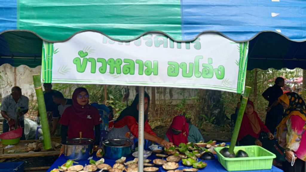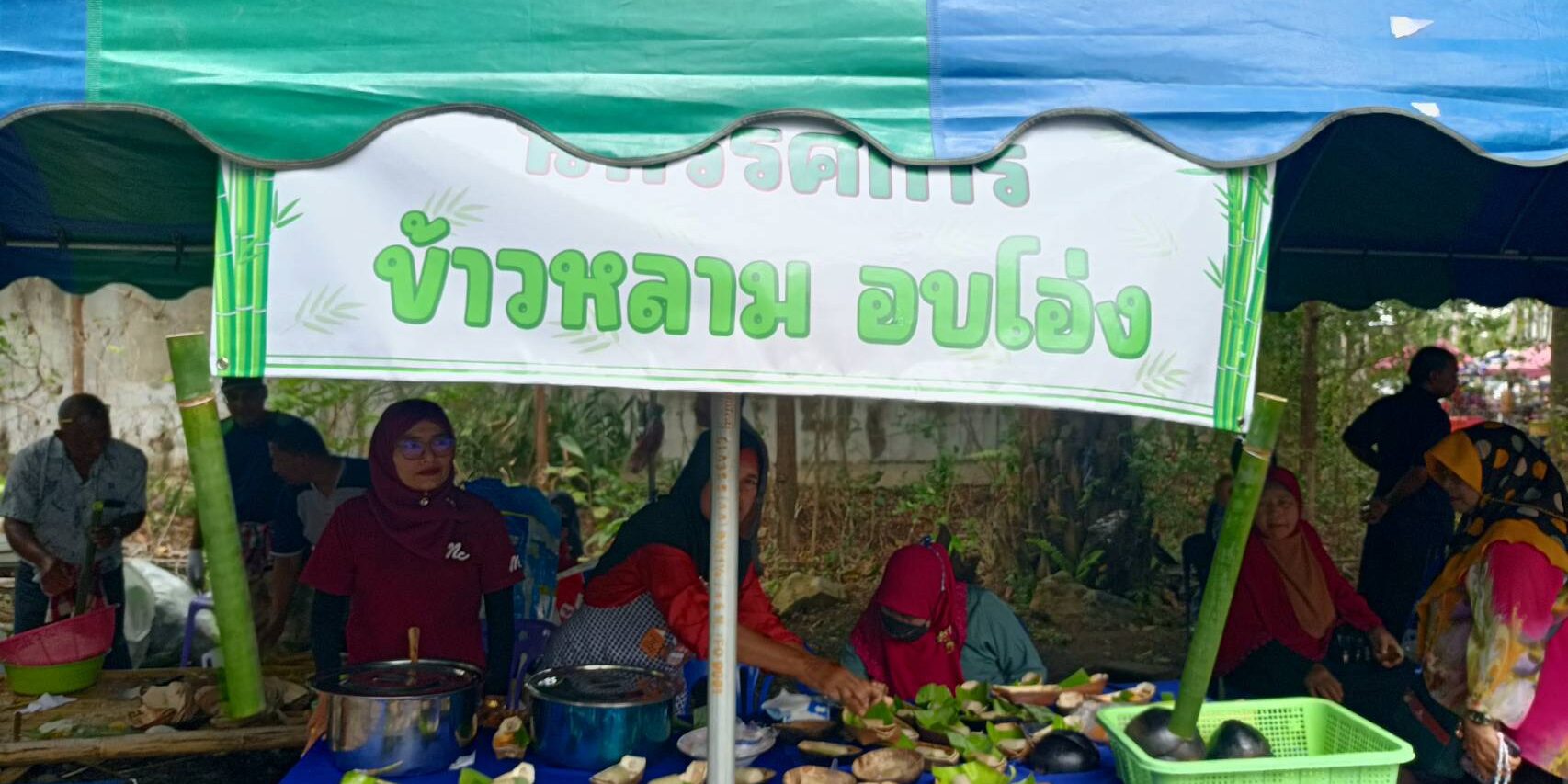 งานแข่งว่าว กินข้าวหลาม สืบสานประเพณี ภูมิปัญญาท้องถิ่น ที่ตลาดชายเขาหมู่ที่ 1 ตำบลทุ่งนุ้ย อำเภอควนกาหลง จังหวัดสตูล นอกจากจะมีการแข่งว่าว ให้เด็ก ๆได้เล่นว่าวกันอย่างสนุกสนานและมีการแสดงศิลปะวัฒนธรรมพื้นถิ่นแล้ว ที่นี่ยังมีการนำอาหารการกินที่เป็นภูมิปัญญาท้องถิ่นโบราณมาออกบูธโชว์ด้วย อย่างเมนู “ข้าวเหนียวหลามอบโอ่ง” ซึ่งเดิมทีเมนูนี้มีจุดเริ่มต้นมาจาก ข้าวหลามที่หุงด้วยฟืนไฟที่มีควันปกคลุมคละคลุ้ง แต่เมื่อชาวบ้านชุมชนควนบ่อทอง หมู่ที่ 1 ต.ทุ่งนุ้ย ได้เกิดไอเดียที่ว่า (ในเมื่อไก่ยังนำมาอบโอ่งได้ แล้วทำไม ข้าวเหนียวหลามจะอบโอ่งไม่ได้) เมื่อเป็นเช่นนั้นแล้ว จึงเปิดปฏิบัติการนำข้าวเหนียวล้างน้ำสะอาด กรอกปนกับหัวกะทิลงในกระบอกไม้ไผ่ที่ห่อด้วยใบตอง แล้วนำไปเรียงไว้ในโอ่งมังกรที่มีการเจาะรู ใส่เตาไฟอังโล้ไว้ตรงกลางโอ่งปิดฝา อบอยู่ประมาณ 1 ชั่วโมงครึ่ง โดยทุก ๆ ครึ่งชั่วโมงจะเปิดฝาพลิกไปมาหนึ่งครั้งจนครบ 3 ครั้งคือ 1 ชั่วโมงครึ่งเป็นอันสำเร็จ ได้ความอร่อยกลมกล่อม แถมใช้เชื้อเพลิงน้อยและลดมลพิษทางอากาศ ไม่มีกลุ่มควันไฟคละคลุ้งเหมือนการหุงข้าวหลามย่างไฟกับกระบอกไม้ไผ่ เสริ์ฟพร้อมกับแกงมัสมั่นเนื้ออร่อยอิ่มจุก ยิ่งได้ทานกับมือตามวัฒนธรรมทางภาคใต้แล้วฟินกันเลยทีเดียว