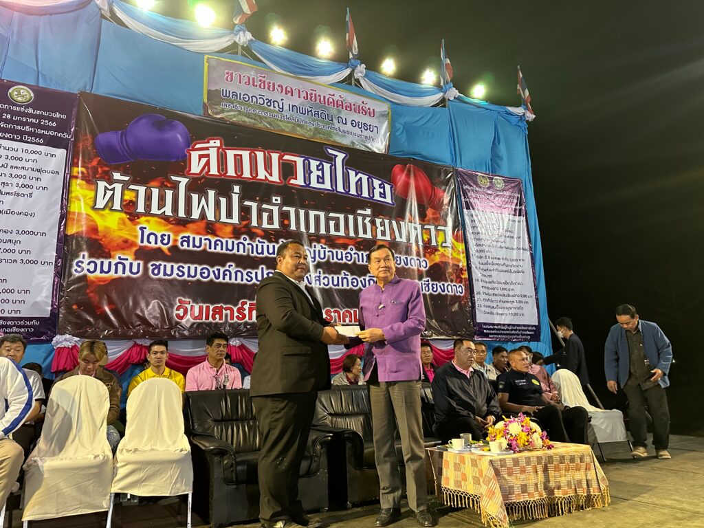 พล.อ.วิชญ์ เทพหัสดิน ณ อยุธยา “บิ๊กน้อย” เลขาธิการโอลิมปิคแห่งประเทศไทย ได้เดินทางมาเป็นประธานเปิดงานที่ จ.เชียงใหม่ ในงาน “ศึกมวยไทย ต้านไฟป่า อ.เชียงดาว ปี 2566” ซึ่งจัดโดยสมาคมกำนันผู้ใหญ่บ้านอำเภอเชียงดาว ร่วมกับชมรมองค์กรปกครองส่วนท้องถิ่นอำเภอเชียงดาว โดยมีนายก อบต กำนัน ผู้ใหญ่บ้าน พร้อมหน่วยงานที่เกี่ยวข้องเข้าร่วมต้อนรับ
