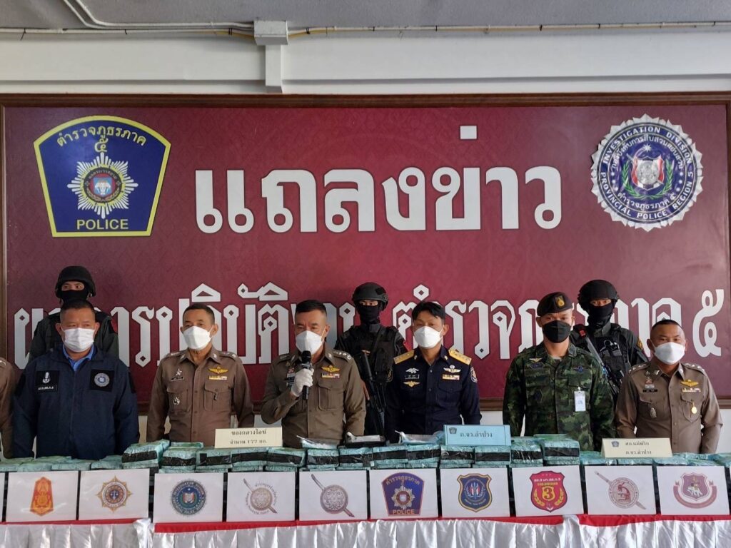 วันที่ 30 มกราคม 2566 เวลา 10.00 น. ตำรวจภูธรภาค 5 โดย พล.ต.ท.ปิยะ ต๊ะวิชัย ผบช.ภ5, พล.ต.ต.นพดล กรึงไกร รอง ผบช.ภ.5,พล.ต.ต.วรพงษ์ คำลือ ผบก.สส.ภ.5, พตอ.อัครินทร์ กาสา รอง ผบก.ภ.จว.ลำปาง,พตอ.นพดล ใบเรือ ผกก.สภ.แม่พริก,นายธันวา ผุดผ่อง ผู้เชี่ยวชาญด้านการป้องกันและปราบปรามยาเสพติด ภาค5 ,พ.อ.นพดล คามเกตุ รอง หน.ส่วนปฏิบัติการ ศอ.ปส.ชน. ได้ร่วมกันแถลงผลการจับกุมยาเสพติดรายสำคัญ จำนวน 1 คดี เป็นการจับกุมของ ด่านตรวจยาเสพติดแม่พริก จังหวัดลำปาง เมื่อวันที่ 27 มกราคม 2566 เวลาประมาณ 03.30 น. โดยสามารถจับกุมผู้กระทำความผิดได้ 1 คน ตรวจยึดยาไอซ์ได้จำนวน 177 กิโลกรัม และรถยนต์จำนวน 1 คัน