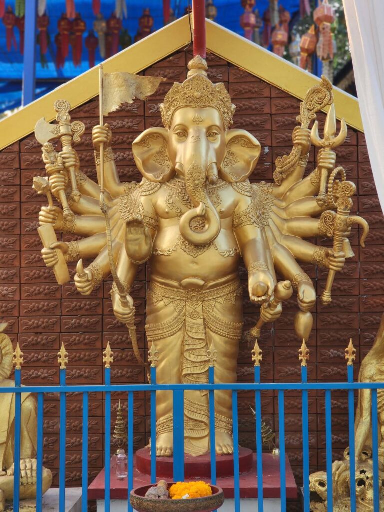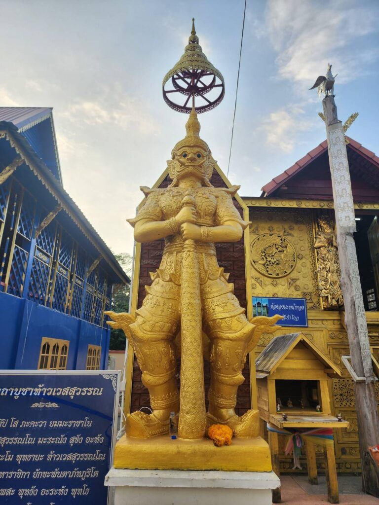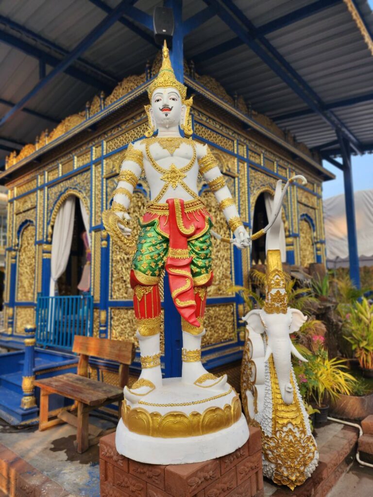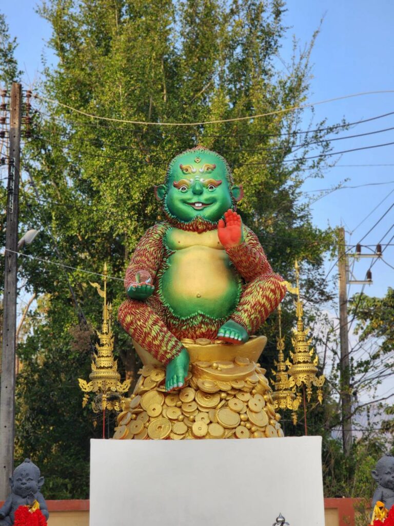 อาจารย์ทรัพย์-อาจารย์สรณ์ ยังพาไปกราบ เทพอินทร์แปลงสี่หูห้าตา ที่เพิ่งทำพิธีไปเมื่อต้นปี 2566 รูปร่างจะต่างจาก คุ้มนะหน้าทอง ของ อาจารย์สุบิน นะหน้าทอง ทรงคล้ายๆ พาวเวอร์เรนเจอร์ แถมมีฟันหน้า 2 ซี่ อาจารย์ทรัพย์ บอกว่า “เหมือนซูเปอร์แมน และคนจะได้รู้ว่า สร้างในปีกระต่าย”