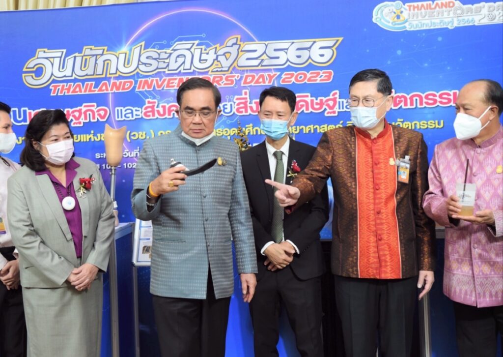 วันที่ 31 มกราคม 2566 ก่อนการประชุมคณะรัฐมนตรี พลเอก ประยุทธ์ จันทร์โอชา นายกรัฐมนตรีและรัฐมนตรีว่าการกระทรวงกลาโหม พร้อมคณะรัฐมนตรี เยี่ยมชมสิ่งประดิษฐ์ และนวัตกรรม ที่จะนำไปจัดแสดงในงาน “วันนักประดิษฐ์ 2566” (Thailand Inventors’ Day 2023) โดยมีศาสตราจารย์พิเศษ ดร.เอนก เหล่าธรรมทัศน์ รัฐมนตรีว่าการกระทรวงการอุดมศึกษา วิทยาศาสตร์ วิจัยและนวัตกรรม (อว.) นำเยี่ยมชม และ ศาสตราจารย์ นายแพทย์สิริฤกษ์ ทรงศิวิไล ปลัดกระทรวงการอุดมศึกษา วิทยาศาสตร์ วิจัยและนวัตกรรม (อว.) นำการเยี่ยมชมและให้การต้อนรับ พร้อมนี้ ดร.วิภารัตน์ ดีอ่อง ผู้อำนวยการสำนักงานการวิจัยแห่งชาติ (วช.) และคณะนักประดิษฐ์ นักวิจัย ร่วมนำเสนอผลงาน