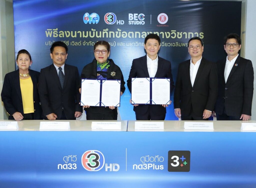บริษัท บีอีซี เวิลด์ จำกัด (มหาชน) โดย นายสุรินทร์ กฤตยาพงศ์พันธุ์ กรรมการผู้อำนวยการ สายธุรกิจโทรทัศน์ นำคณะผู้บริหาร นายอภิชาติ์ หงษ์หิรัญเรือง กรรมการผู้อำนวยการ สายธุรกิจ บีอีซี สตูดิโอ และ ดร.อัครพล วีรวงศ์ รองกรรมการผู้อำนวยการ สำนักบริหารทรัพยากร ร่วมพิธีลงนามบันทึกข้อตกลงและความร่วมมือทางวิชาการ กับ มหาวิทยาลัยหัวเฉียวเฉลิมพระเกียรติ โดย รศ.ดร.อุไรพรรณ เจนวาณิชยานนท์ อธิการบดี และคณะผู้บริหารมหาวิทยาลัยหัวเฉียวเฉลิมพระเกียรติ เมื่อวันศุกร์ที่ 27 มกราคม 2566 ณ อาคารมาลีนนท์ ทาวเวอร์ ถ. พระราม 4 ตามนโยบายส่งเสริมการเรียนรู้ผ่านการฝึกประสบการณ์วิชาชีพ หรือ Work Based Learning เพื่อสร้างบุคลากรคุณภาพ และการประชาสัมพันธ์เกี่ยวกับการรับสมัครงานในตำแหน่งต่าง ๆ ของบริษัท รวมถึงการแลกเปลี่ยนองค์ความรู้ ผ่านการจัดกิจกรรมต่างๆ ร่วมกับสถาบันการศึกษา