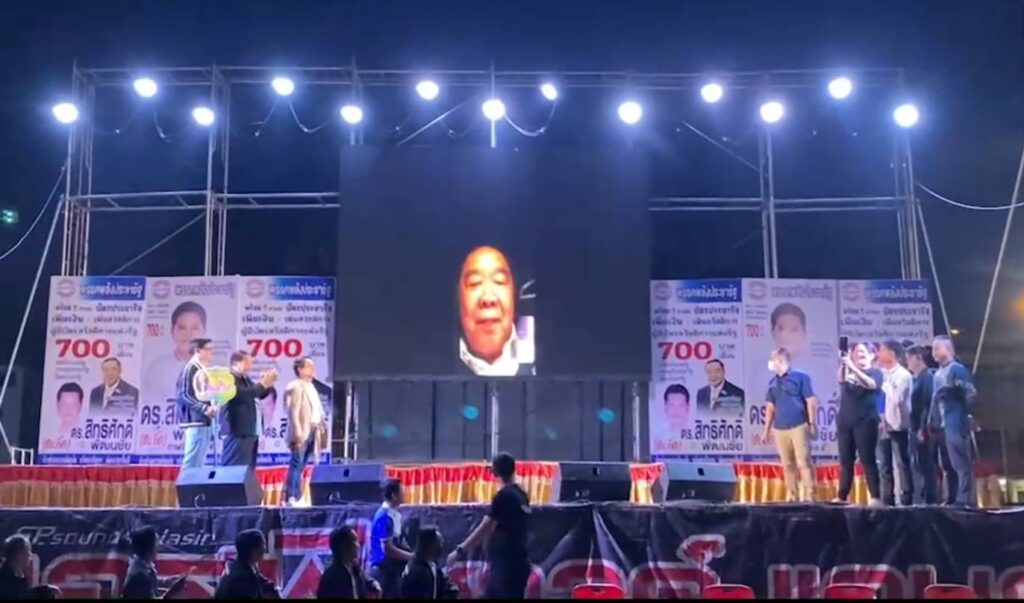ผู้สื่อข่าวได้รายงานต่อว่าในเวลา 19.00 น.พล.อ.ประวิตร วงษ์สุวรรณ (ลุงป้อม) ได้โฟนอินผ่านระบบ VDO CONFERENCE พร้อมทักทายเป็นกำลังใจให้กับพี่น้องประชาชนชาวกาฬสินธุ์ทุกคน พร้อมกล่าวว่าจะช่วยขับเคลื่อนและผลักดันทุกโครงการที่มีประโยชน์ต่อพี่น้องประชาชนชาวกาฬสินธุ์ ทั้งในและนอกพื้นที่ ทั้งนี้ลุงป้อมได้กล่าวฝากให้พี่น้องประชาชนเมตตาให้การสนับสนุนทีมงานพรรคพลังประชารัฐด้วย จากนั้นพี่น้องประชาชนทุกเขต ทุกอำเภอในพื้นที่จังหวัดกาฬสินธุ์ได้ตะโกนขอให้พรรคพลังประชารัฐสนับสนุนทีมงานของ ดร.อี๊ด (ดร.สิทธิ์ศักดิ์ พัฒนชัย) ว่าที่ผู้สมัคร ส.ส.ในเขตพื้นที่ และทุกเขตในจังหวัดกาฬสินธุ์ เพื่อเป็นความหวังให้กับพี่น้องชาวกาฬสินธุ์ ทุกเขตทุกพื้นที่แบบยกทีม รวมทั้ง รวมพลังตะโกนเชียร์ลุงป้อม เป็นนายกคนที่ 30 พร้อมปรบมือเป็นกำลังใจ จนเสียงดังสนั่นกึกก้องทั้งงาน