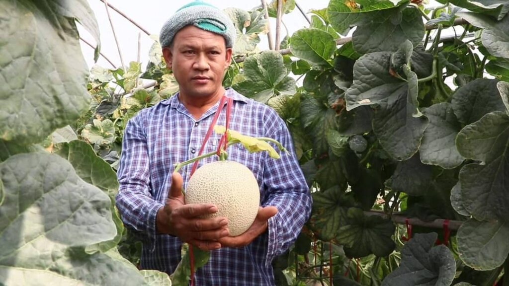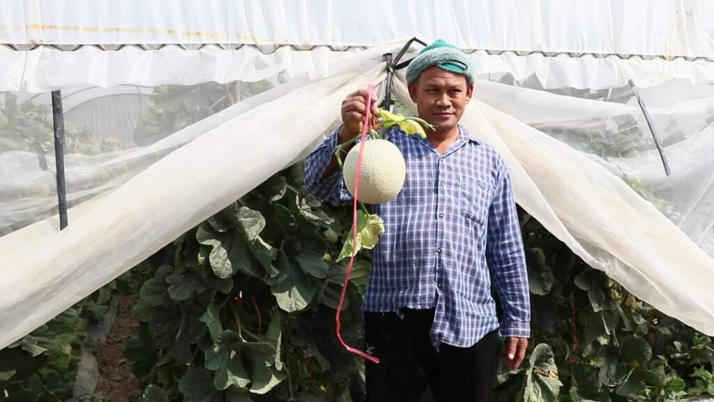 นายบุญชอบ อิ่มเชื้ออยู่ เจ้าของสวนเมล่อน เรียนไม่จบออกมาช่วยพ่อแม่ทำนาแล้วขาดทุน จึงหันมาเพาะปลูกเมล่อน ในพื้นที่ ขนาด 5 ไร่ มีโรงเรือนทั้งหมด 20 โรงเรือน โดยนายบุญชอบ จะทำการวางเเผนการผลิต สับเปลี่ยนหมุนเวียนการใช้โรงเรือนเพาะปลูกให้มีผลผลิตออกสู่ตลาดตลอดทั้งปี ซึ่งในปัจจุบัน สามารถเก็บเกี่ยวผลผลิตได้มากถึงสัปดาห์ละ 3 – 5 ตัน เเละทำการรวบรวมผลผลิตไปจำหน่ายร่วมกับกลุ่มเครือข่าย ที่อำเภอราชบัวหลวง จังหวัดพระนครศรีอยุธยา เป็นหลัก โดยจำหน่ายในราคาขายส่งกิโลกรัมละ 50 บาท เเละปลีกหน้าสวน กิโลกรัมละ 70 บาท ด้วยประสบการณ์ยาวนานกว่า 23 ปี ทำให้มีผลผลิตมีคุณภาพ ได้รับการรับรองมาตรฐาน GAP ปลอดสารพิษ รสชาติดี หวาน กรอบ อร่อย มีผลผลิตตลอดทั้งปี จึงปลอดภัยต่อผู้บริโภคเเละเป็นที่ต้องการของตลาด ผลผลิตดังกล่าวจึงได้นำไปวางจำหน่าย ในตลาด Modern trade เช่นห้าง Top Supermarket, Lotus’s, Big C เป็นต้น ทำให้เกษตรกรมีรายได้สม่ำเสมอตลอดทั้งปี สามารถเลี้ยงดูตนเองเเละครอบครัวได้อย่างมั่นคง เเละยั่งยืน อนาคตเจ้าของสวนจะปลูกดอกไม้สวยงามเพื่อเรียกลูกค้าให้มาท่องเที่ยวถ่ายรูปที่ไร่ โดยสำนักงานเกษตรจังหวัดสิงห์บุรี ดำเนินการจัดกิจกรรมประชาสัมพันธ์ผลไม้ประจำฤดูกาลของจังหวัดสิงห์บุรี ณ สวนเมล่อน ของนายบุญชอบ อิ่มเชื้ออยู่ เกษตรกรในพื้นที่ หมู่ที่ 1 ตำบลพักทัน อำเภอบางระจัน จังหวัดสิงห์บุรี วัตถุประสงค์เพื่อเป็นการส่งเสริมการผลิตและสนับสนุนการจำหน่ายผลผลิต พร้อมประชาสัมพันธ์สินค้าเกษตรประจำฤดูกาลของจังหวัดสิงห์บุรี ให้เป็นที่รู้จักของคนทั่วไป ตลอดจนเป็นการส่งเสริมการท่องเที่ยวเชิงเกษตร เพื่อสร้างรายได้ ให้เกษตรกรผู้ผลิตสินค้าเกษตรอีกทางหนึ่ง สนใจติดต่อสอบถามสั่งซื้อได้ที่ Facebook : บุญชอบ อิ่มเชื้ออยู่ เบอร์โทรติดต่อ 093-782 2544