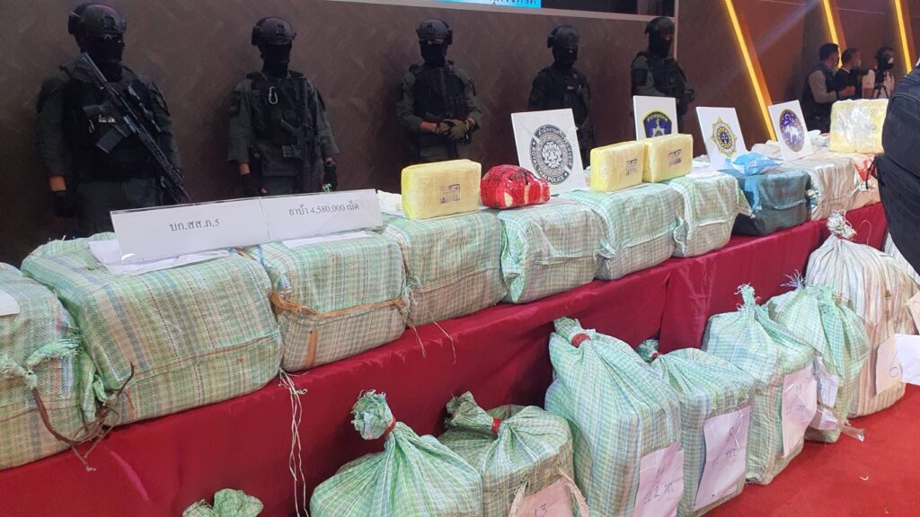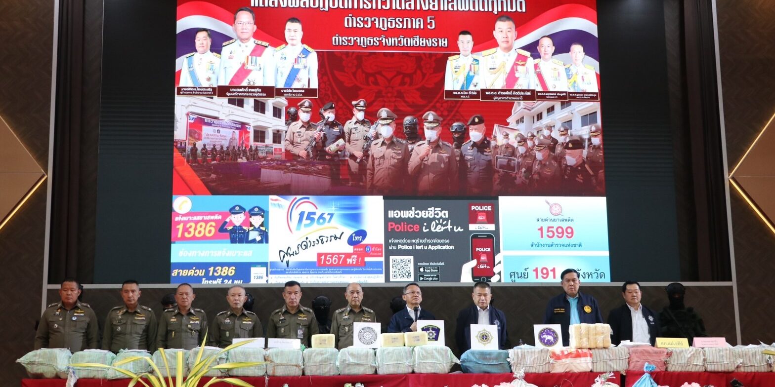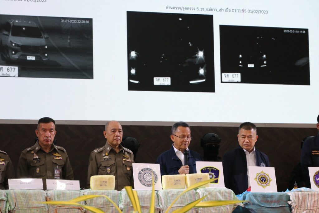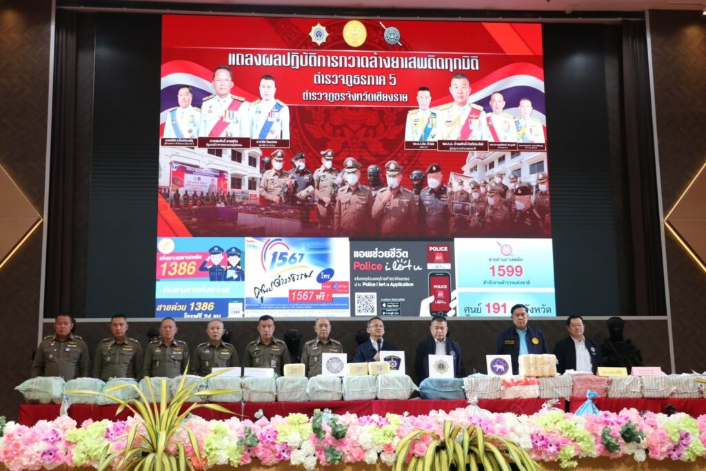 วันที่ 2 กุมภาพันธ์ 2566 ที่หอประชุมใหญ่ มหาวิทยาลัยราชภัฏเชียงราย จังหวัดเชียงราย นายสมศักดิ์ เทพสุทิน รัฐมนตรีว่าการกระทรวงยุติธรรม เป็นประธานแถลงผลการจับกุมเครือข่ายนักค้ายาเสพติด รายสำคัญ จำนวน 2 คดี ยึดยาบ้ารวม 7.8 ล้านเม็ด ในพื้นที่จังหวัดเชียงรายและขยายผลจับกุมทีมลำเลียงเข้าสู่พื้นที่ตอนใน ได้ผู้ต้องหารวม 8 คน โดยมี พล.ต.อ.ชินภัทร สารสิน รอง ผบ.ตร. พล.ต.ท.ปิยะ ต๊ะวิชัย ผบช.ภ.5 , นายวิชัย ไชยมงคล เลขาธิการ ป.ป.ส. นายวราดิศร อ่อนนุช รองผู้ว่าราชการจังหวัดเชียงราย พล.ต.ต.พฤทธิพงษ์ ประยูรศิริ รอง ผบช.ภ.5 นายอภิกิต ฉ.โรจน์ประเสริฐ ผู้อำนวยการสำนักงาน ปปส.ภาค 5 พล.ต.ต.ดุลเดชา อาชวะสมิตระกูล ผบก.ภ.จว.เชียงราย พ.ต.อ.พงษ์สวัสดิ์ ไชยบาล รอง ผบก.ภ.จว.เชียงราย ร่วมแแกลง และมีเครือข่ายกองทุนแม่ของแผ่นดินจังหวัดเชียงราย ผู้นำชุมชนและประชาชนรวมกว่า 1,250 คน เข้าร่วมรับฟังการถลงข่าวครั้งนี้ด้วย