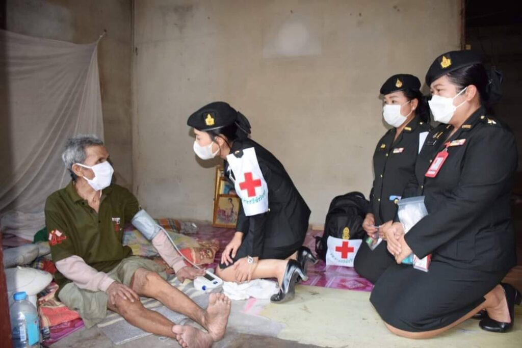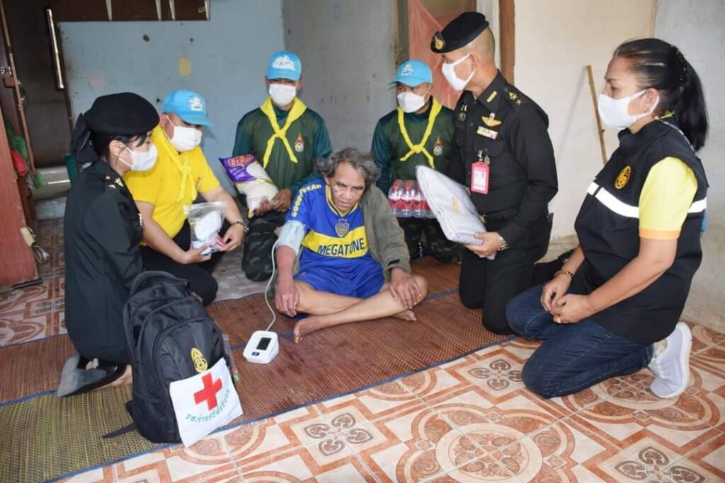 วันที่ 3 กุมภาพันธ์ 2566 เวลา 14.00 น. : ศูนย์บรรเทาสาธารณภัย มณฑลทหารบกที่ 23 โดย พันเอก สุรพงษ์ ยอดอินทร์ รองผู้บัญชาการมณฑลทหารบกที่ 23 /รองผอ.รมน. จังหวัดขอนขอนแก่น พร้อมด้วยชุดปฏิบัติการกิจการพลเรือน มณฑลทหารบกที่ 23 และจิตอาสาพระราชทานจากกองพันมณฑลทหารบกที่ 23 ลงพื้นที่เยี่ยมบ้านประชาชนชุมชนรอบค่ายฯ พร้อมมอบผ้าห่มกันหนาวให้กับผู้สูงอายุ และผู้ป่วยติดเตียง จำนวน 11 ราย ที่ได้รับผลกระทบจากสภาวะอากาศหนาวในพื้นที่ชุมชนรอบค่ายศรีพัชรินทร ชุมชนริมทางรถไฟ หมู่ที่ 13 บ้านดอนหญ้านาง ตำบลศิลา อำเมือง จังหวัดขอนแก่น โดยมี ผู้ใหญ่บ้าน ประธาน อสม. และผู้นำท้องถิ่นในพื้นที่ร่วมให้การต้อนรับ พร้อมมอบข้าวสาร น้ำดื่ม หน้ากากอนามัยและแอลกอฮอล์เจล เพื่อบรรเทาความเดือดร้อน สร้างขวัญกำลังใจ ให้กับผู้ประสบภัยหนาว ตามนโยบายของ พลเอก ณรงค์พันธ์ จิตต์แก้วแท้ ผู้บัญชาการทหารบก ในเรื่องการช่วยเหลือประชาชนให้เกิดความรวดเร็ว ทันต่อสถานการณ์ และให้กลับเข้าสู่การดำเนินชีวิตในสภาวะปกติโดยเร็วที่สุด โดยมีชุดแพทย์เคลื่อนที่จาก รพ.ค่ายศรีพัชรินทร เข้าตรวจสุขภาพ และให้คำแนะนำการดูแลสุขภาพเบื้องต้น