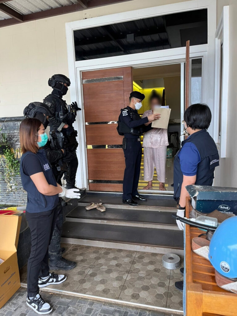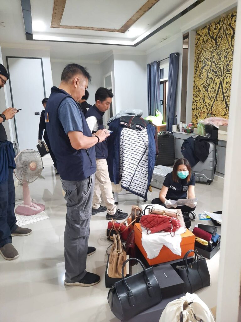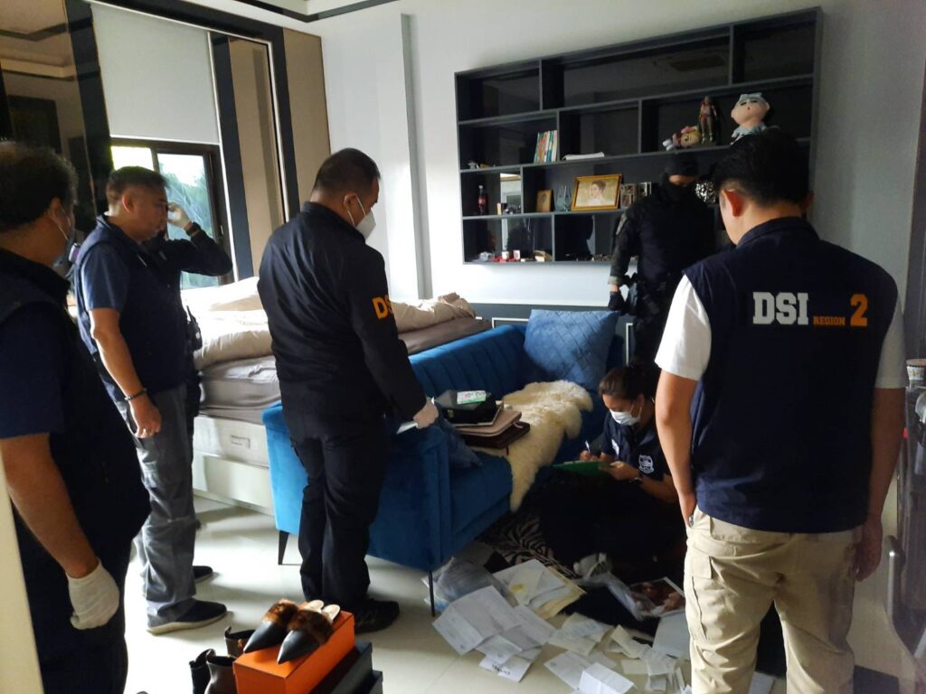 วันที่ 3 กุมภาพันธ์ 2566 : พันตำรวจตรี สุริยา สิงหกมล รักษาราชการแทนอธิบดีกรมสอบสวนคดีพิเศษ มอบหมายให้ ร้อยตำรวจเอก วิษณุ ฉิมตระกูล รองอธิบดีกรมสอบสวนคดีพิเศษ สั่งการให้ ร้อยตำรวจโท เสฎฐวุฒิ สายป้อง ผู้อำนวยการส่วนคดีธุรกิจการเงินนอกระบบ 3 และ นางสาวนันท์นภัส เกยุราพันธุ์ ผู้อำนวยการส่วนคดีธุรกิจการเงินนอกระบบ 1 พร้อมด้วยคณะพนักงานสอบสวนคดีพิเศษที่ 36/2563 สนธิกำลังกับ ศูนย์ปฏิบัติการคดีพิเศษเขตพื้นที่ 2 และกองปฏิบัติการพิเศษ กรมสอบสวนคดีพิเศษ นำหมายค้นศาลจังหวัดจันทบุรี เข้าตรวจค้นบ้านเลขที่ 14/2 ถนนศรีนวดิตถ์ ตำบลท่าใหม่ อำเภอท่าใหม่ จังหวัดจันทบุรี