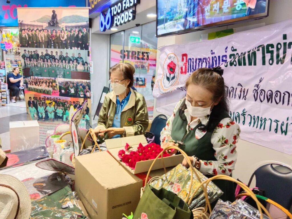 นักแสดงหนุ่มสาววัยรุ่นใจกุศลจากสองซีรี่ส์ที่กำลังจะออกอากาศทางช่อง 3 “ตรวนธรณี” โดยผู้จัด คุณศุภกิตติ์ กันอุปัทว์, คุณอัญธิศร เชาวนปรีชา นำนักแสดง คัท ธนวัฒน์ สุขเฟื่องฟู และ โจเซฟ ธนาคาร โกราช แทคทีมซีรี่ส์ “ติณณ์เต็มใจ” นำทีมโดยผู้จัด คุณคหบดี กัลย์จาฤก และ คุณวรัญช์รักษ์ พรปวีณ์วรกุล นำนักแสดง หนุ่มรัน กัณต์ธีภพ ศิโรรัตนพาณิชย์ – ไทเกอร์ เอกพล แซ่เฮ้ง – ปังปอนด์ พจนา เลิศชนะชมภู – แอนดี้ ธนกฤต แสงพันธ์ – นิริน ธีรมนธ์ สังข์สุวรรณ โดยมี คุณพุทธชาด ศรีนิศากร ผู้ช่วยประธานเจ้าหน้าที่บริหารสายการตลาด และ คุณศตกมล วรกุล ผู้อำนวยการฝ่ายสื่อสารองค์กร บริษัท เอ็ม บี เค จำกัด (มหาชน)ที่เอื้อเฟื้อสถานที่และประชาสัมพันธ์ภายในศูนย์การค้าพร้อมด้วย คุณวรวรรณ ติณสูลานนท์ ผู้จัดการอาวุโสประชาสัมพันธ์ สำนักกิจการและสื่อสารองค์กร ไทยทีวีสีช่อง 3 ที่นำนักแสดงเข้าร่วมจำหน่ายดอกป๊อปปี้และสมทบด้วยนักแสดงใจกุศลอย่าง อาเล็ก รจนา – จุ๊บแจง วิมลพรรณ – ปุ้ย อรัญญา – หลิน นุศรา – ยา ภูศญา – แอดมินหมู และจิตอาสาของมูลนิธิ ที่ช่วยงานกันอย่างขยันขันแข็ง มาร่วมจำหน่ายดอกป๊อปปี้และผลิตภัณฑ์สัญญลักษณ์ดอกป๊อปปี้ ณ ชั้น G ศูนย์การค้า MBK ในวันศุกร์ที่ 3 กุมภาพันธ์ 2566 โดยมี นักเรียนจากกรมดุริยางค์ทหารเรือ และนักเรียนจากโรงเรียนจันทร์หุ่นบำเพ็ญเข้าร่วมเดินจำหน่ายด้วย