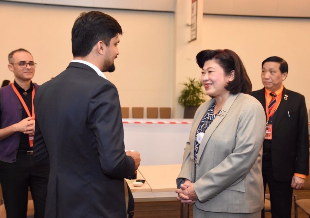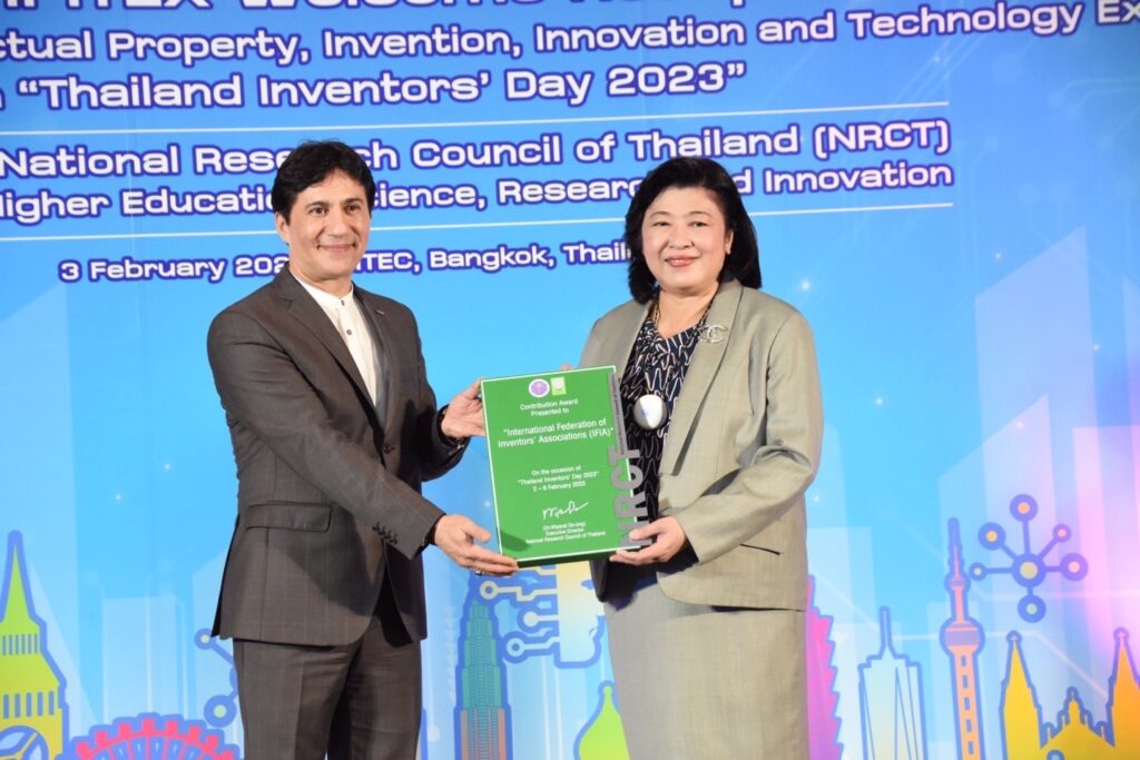 ดร.วิภารัตน์ ดีอ่อง ผู้อำนวยการสำนักงานการวิจัยแห่งชาติ (วช.) ได้ให้เกียรติกล่าวต้อนรับผู้บริหารหน่วยงานนานาชาติ และได้กล่าวถึงแนวทางและบทบาทของ (วช.) ในการส่งเสริมการสร้างความร่วมมือด้านการประดิษฐ์คิดค้นในระดับนานาชาติอย่างต่อเนื่อง นอกจากนี้ Mr.Alireza Rastegar, President of International Federation of Inventors’ Associations (IFIA) หรือ สหพันธ์สมาคมนักประดิษฐ์นานาชาติ ได้กล่าวชื่นชมและขอบคุณ วช. ในการจัดงานวันนักประดิษฐ์ในปีนี้อย่างยิ่งใหญ่ขึ้นอีกครั้ง Mr. Rastegar ได้กล่าวว่างานวันนักประดิษฐ์เป็นเวทีการประกวดและจัดแสดงสิ่งประดิษฐ์ที่สำคัญและได้รับการยอมรับในระดับสากล โดยได้ถูกบรรจุอยู่ในแผนการเข้าร่วมประจำปีของประเทศต่างๆ ทุกปี
