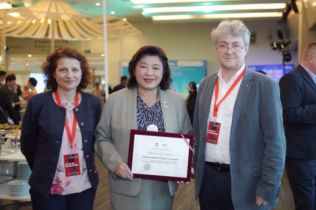 สำนักงานการวิจัยแห่งชาติ (วช.) กระทรวงการอุดมศึกษา วิทยาศาสตร์ วิจัย และนวัตกรรม (อว.) ได้จัดงานเลี้ยงต้อนรับผู้บริหารหน่วยงานนานาชาติ เมื่อวันที่ 3 กุมภาพันธ์ 2566 ณ ไบเทค บางนา กรุงเทพฯ เพื่อเป็นการสร้างเครือข่ายด้านการประดิษฐ์คิดค้นและนวัตกรรมระหว่างไทยและนานาชาติ โดยภายในงานได้มีผู้บริหารและผู้แทนหน่วยงานด้านการส่งเสริมการประดิษฐ์คิดค้นและนวัตกรรมจากนานาประเทศกว่า 40 ท่าน จากกว่า 20 ประเทศ 24 องค์กร กว่า 400 ผลงาน เข้าร่วมในงานดังกล่าว