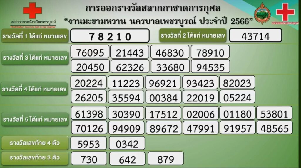 สำหรับผลการออกสลากกาชาด ประจำปี 2566 มีดังนี้