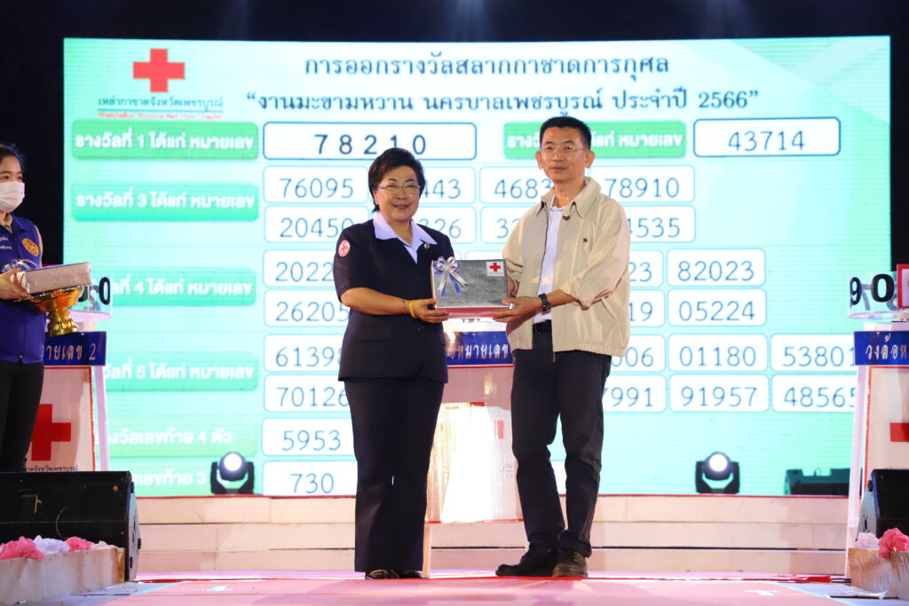 ทั้งนี้ผู้ที่ถูกเลขรางวัลให้มาติดต่อขอรับรางวัลภายในวันที่ 31 มีนาคม 2566 ในวันและเวลาราชการ หากพ้นกำหนดถือว่าสละสิทธิ์ ณ สำนักงานเหล่ากาชาดจังหวัดเพชรบูรณ์ (หลังที่ว่าการอำเภอเมืองเพชรบูรณ์) โทร. 056-721528