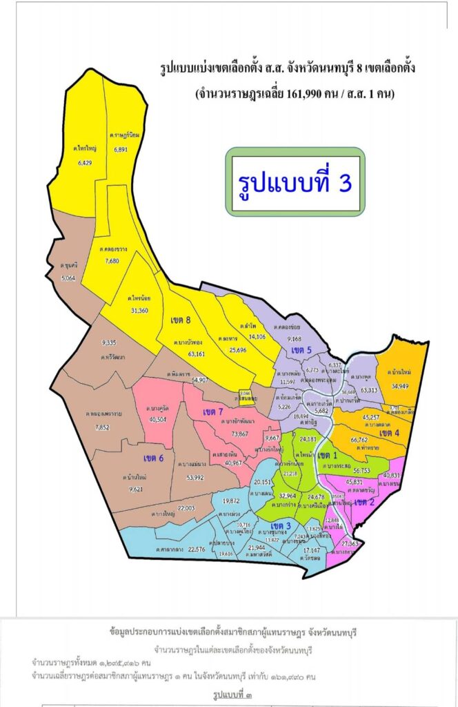 นายวัชรินทร์ ศรีถาพร ที่ปรึกษาฝ่ายกฏหมายของว่าที่ผู้สมัครฯ กล่าวว่า “ที่ผ่านมา ว่าที่ผู้สมัครพรรคการเมืองทุกพรรคได้ลงพื้นที่ของตัวเองตามรูปแบบที่ 1 และ รูปแบบที่ 2 ส่วนในรูปแบบที่ 3 ผู้สมัครทุกพรรคการเมืองไม่เคยทราบมาก่อน จนมีการประกาศเขตการเลือกตั้ง จึงทราบว่ามีรูปแบบที่มา 3 เข้ามาด้วย โดยรูปแบบที่ 3 ได้แตกต่างจากรูปแบบเดิมอย่างสิ้นเชิง จึงขอตั้งข้อสังเกตว่า ในรูปแบบที่ 3 จะเป็นการเอื้อประโยชน์แก่พรรคการเมืองใดพรรคการเมืองหนึ่งหรือไม่ ทั้งนี้ ในวันจันทร์ที่ 6 ก.พ.66 ที่จะถึงนี้ โดยทีมงานว่าที่ผู้สมัคร ส.ส.และประชาชนในพื้นที่ในเขตเลือกตั้งจังหวัดนนทบุรี จะรวมตัวยื่นหนังสือถึงคณะ กกต.จังหวัดนนทบุรี เพื่อพิจารณาและทบทวนการแบ่งเขตเลือกตั้งดังกล่าว” นายวัชรินทร์ฯ กล่าวทิ้งท้าย