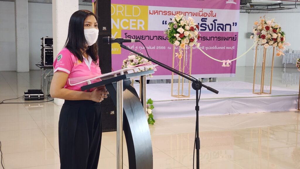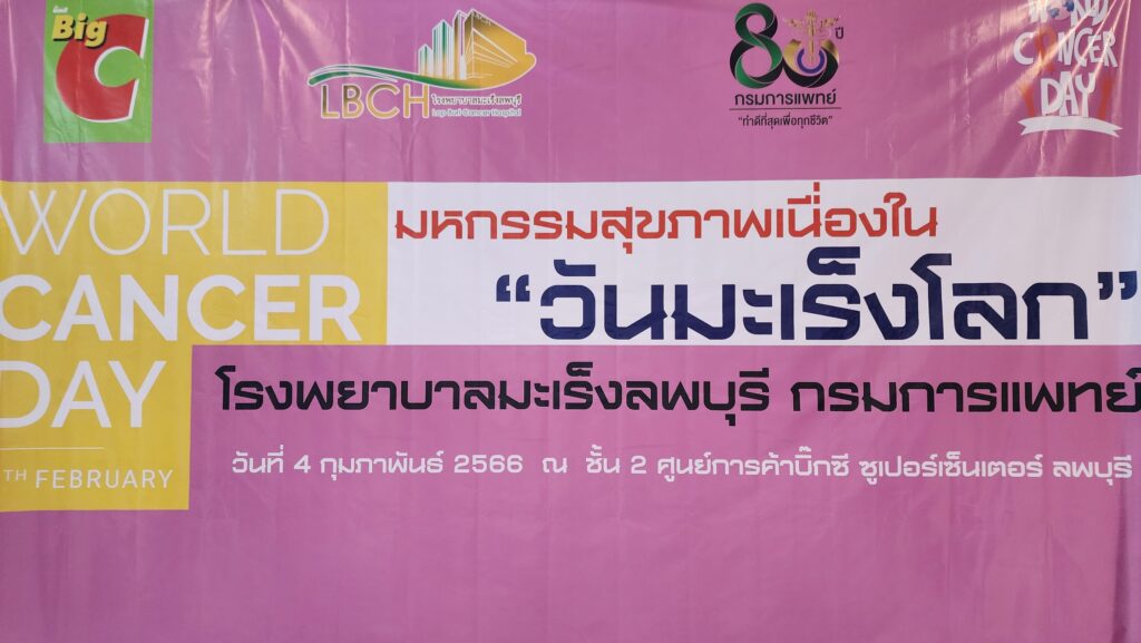 วันที่ 4 กุมภาพันธ์ของทุกปีเป็น “วันมะเร็งโลก” หรือ World Cancer Day แพทย์หญิงสุรัฐญา ศิริอาชากุล รองผู้อำนวยการด้านการแพทย์ โรงพยาบาลมะเร็งลพบุรี กรมการแพทย์ พร้อมด้วยคณะผู้บริหารฯ ได้ร่วมกันเป็นประธาน ในพิธีเปิดโครงการ “มหกรรมสุขภาพ เนื่องในวันมะเร็งโลก” World Cancer Day 2023 ณ ชั้น 2 ศูนย์การค้าบิ๊กซี ซูเปอร์เซ็นเตอร์ ลพบุรี โดยในปี 2566 เน้นที่ประเด็น Uniting our voices and taking action “ร่วมส่งพลังเสียง และลงมือทำ” ซึ่งสถาบันมะเร็งแห่งชาติ และภาคีเครือข่ายทั้งภาครัฐ และเอกชน จะพร้อมใจกันจัดกิจกรรม “วันมะเร็งโลก” เพื่อให้ประชาชนตระหนักถึงความสำคัญในการดูแลสุขภาพ และลดความเจ็บป่วยและการเสียชีวิตจากโรคมะเร็งของคนทั่วโลก รวมถึงรณรงค์ให้ทุกคนใส่ใจ ตรวจสุขภาพร่างกายเป็นประจำทุกปี ซึ่งถือเป็นการขับเคลื่อนเชิงรุก เพื่อให้บริการตรวจคัดกรองมะเร็งที่พบมากในประชากรกลุ่มเสี่ยง ภายใต้สิทธิประโยชน์ ส่งเสริมสุขภาพและป้องกันโรค เพื่อเป็นการกระตุ้นเตือนให้ทุกคน ตระหนักรู้ และร่วมเป็นส่วนหนึ่งในการป้องกัน และลดอัตราการเกิดโรคมะเร็ง รวมถึงการดูแลตัวเองและคนที่คุณรักให้ห่างไกลจากโรคมะเร็ง ซึ่งกิจกรรมภายในงาน ประกอบด้วย การจัดนิทรรศการให้ความรู้เกี่ยวกับโรคมะเร็ง การเล่นเกมส์ การถามตอบปัญหาชิงรางวัล กิจกรรมประเมินความเสี่ยงต่อโรคมะเร็ง และให้คำปรึกษาคลินิกบุหรี่ รวมถึงการให้ข้อมูลการตรวจคัดกรองมะเร็งปากมดลูกด้วยตนเอง พร้อมทั้งให้คำปรึกษาการตรวจสุขภาพ ควบคู่กับการประชาสัมพันธ์ เชิญชวนการตรวจสุขภาพประจำปี การฉีดวัดซีน HPV เพื่อลดเสี่ยงมะเร็งปากมดลูก พร้อมแจกชุดตรวจคัดกรองมะเร็งปากมดลูกด้วยตนเอง (HPV Self Test) การให้คำปรึกษาอาหารต้านมะเร็ง รวมถึงกิจกรรม การบริจาคโลหิต เพื่อผู้ป่วยมะเร็ง ให้กับโรงพยาบาลมะเร็งลพบุรี