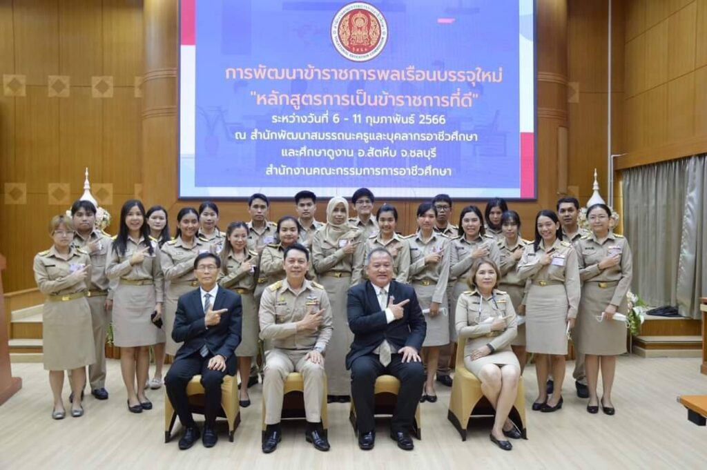 โครงการพัฒนาข้าราชการพลเรือนบรรจุใหม่ “หลักสูตรการเป็นข้าราชการที่ดี” พร้อมทั้งบรรยายพิเศษให้แก่ข้าราชการพลเรือนบรรจุใหม่ จำนวน 21 ราย ระหว่างวันที่ 6 – 11 กุมภาพันธ์ 2566 ณ สำนักพัฒนาสมรรถนะครูและบุคลากรอาชีวศึกษา และศึกษาดูงานจังหวัดชลบุรี