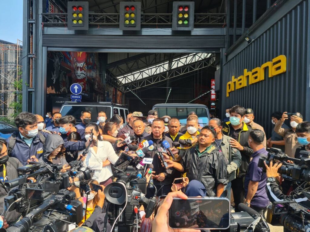 วันที่ 6 ก.พ.66 ผู้สื่อข่าวรายงานว่า พล.ต.อ.ดํารงศักดิ์ กิตติประภัสร์ ผบ.ตร.สั่งการให้ พล.ต.อ. ต่อศักดิ์ สุขวิมล รอง ผบ.ตร.,พล.ต.ท.วรวัฒน์ วัฒน์นครบัญชา ผบช.สอท.,พล.ต.ต.วิวัฒน์ คำชำนาญ รอง ผบช.สอท.,พล.ต.ต.ไพโรจน์ สุขรวยธนโชติ รอง ผบช.สอท.,พล.ต.ต. ชัชปัณฑกาณฑ์ คล้ายคลึง ผบก.สอท.1,พ.ต.อ.กฤตัชญ์ บำรุงรัตนยศ รอง ผบก.สอท.1 นำกำลังชุดสืบสวนบช.สอท. เปิดปฎิบัติการ ทลายเครือข่ายมาเก๊า 888 Ep-4 เข้าตรวจสอบโกดังแห่งหนึ่งย่านกรุงเทพกรีฑา หลังสืบทราบว่า “เบนซ์ เดม่อน” หรือ นายชัยวัฒน์ ขจรบุญถาวร อายุ 37 ปี ใช้สถานที่ดังกล่าวเป็นที่เก็บรถหรู และรถแข่งหลายรายการ