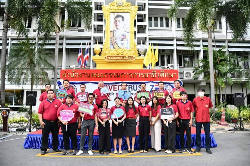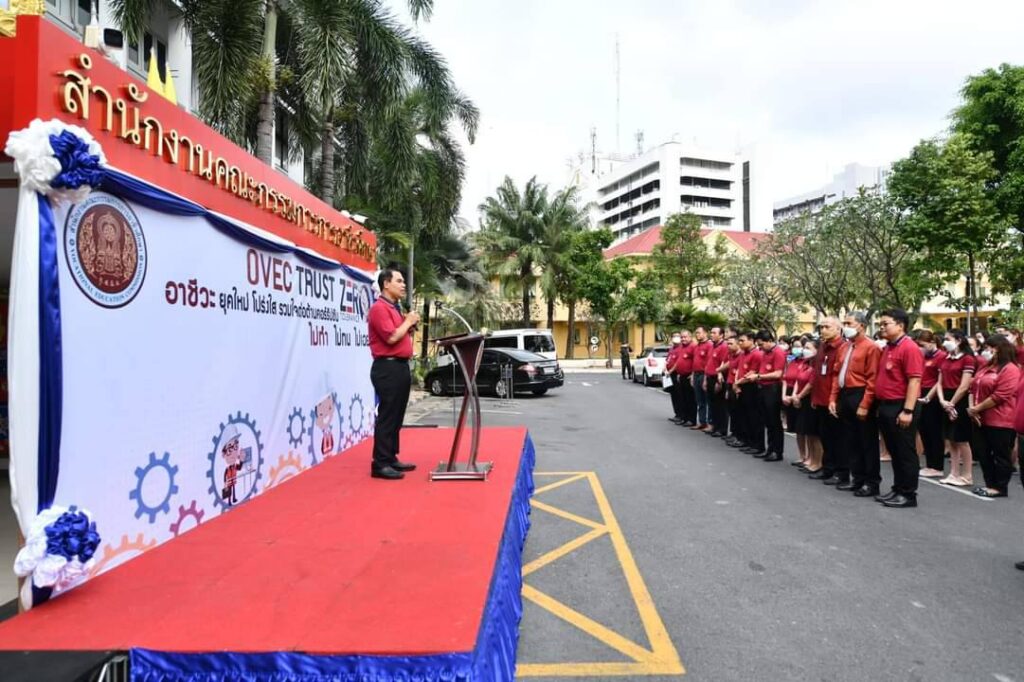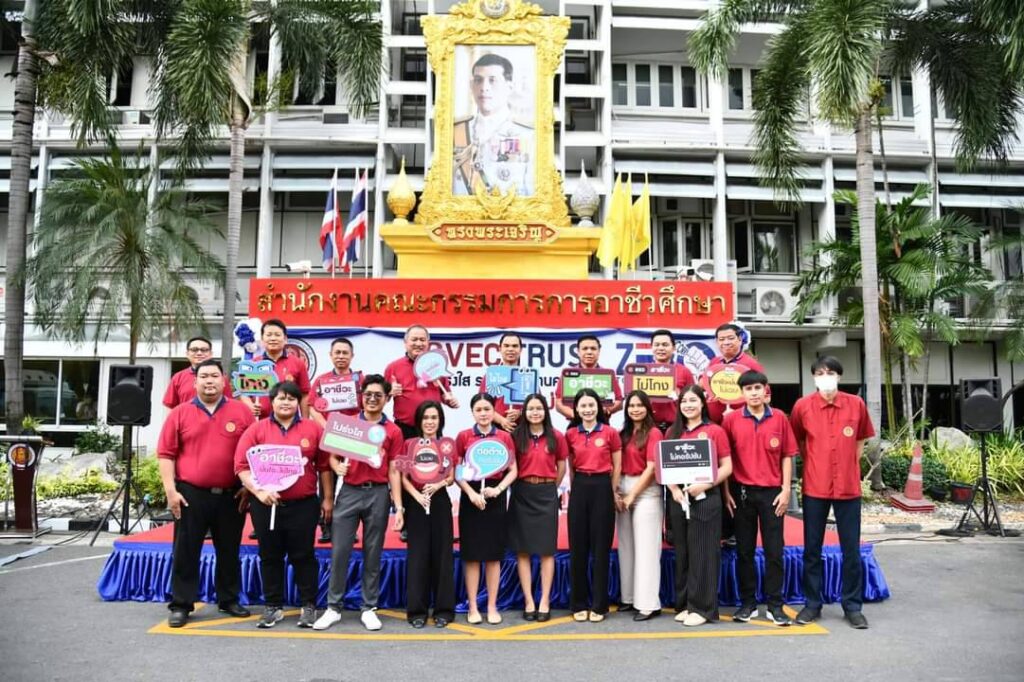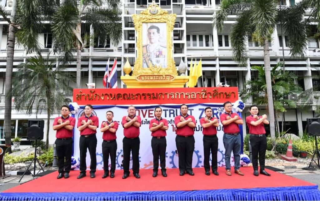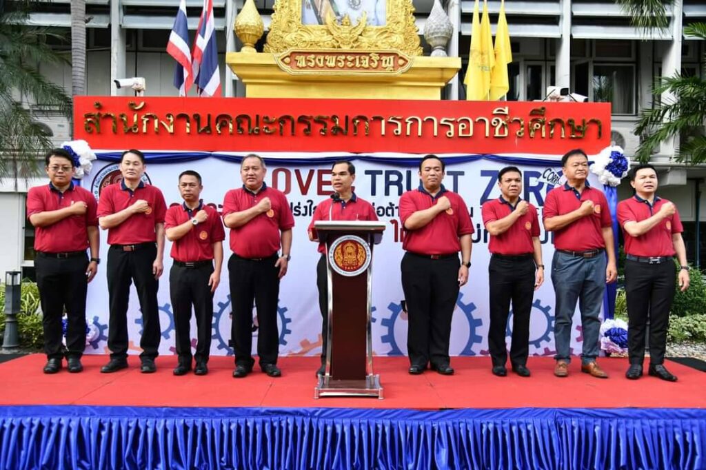 ว่าที่ร้อยตรีธนุ วงษ์จินดา เลขาธิการคณะกรรมการการอาชีวศึกษา พร้อมผู้บริหารระดับสูง นำทีมบุคลากรอาชีวศึกษา เป็นประธานในการประกาศเจตนารมณ์ต่อต้านการทุจริต ของสํานักงานคณะกรรมการการอาชีวศึกษา ณ ลานหน้าสำนักงานคณะกรรมการการอาชีวศึกษา กระทรวงศึกษาธิการ