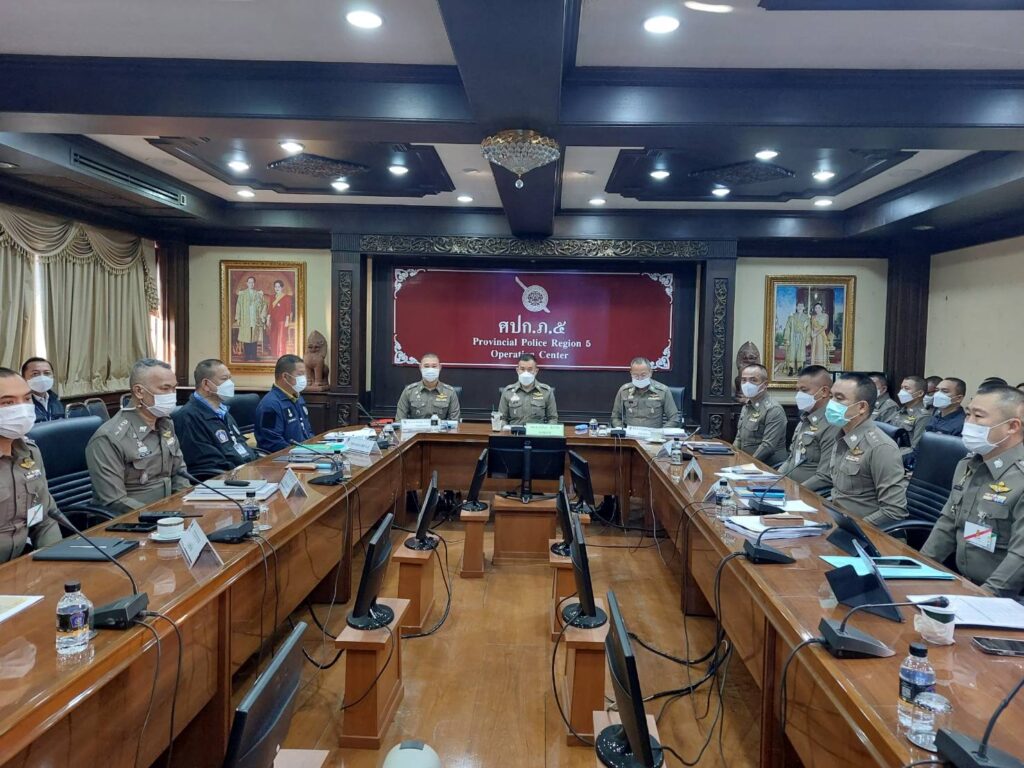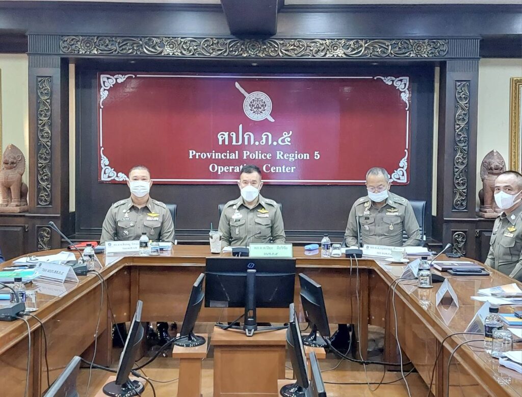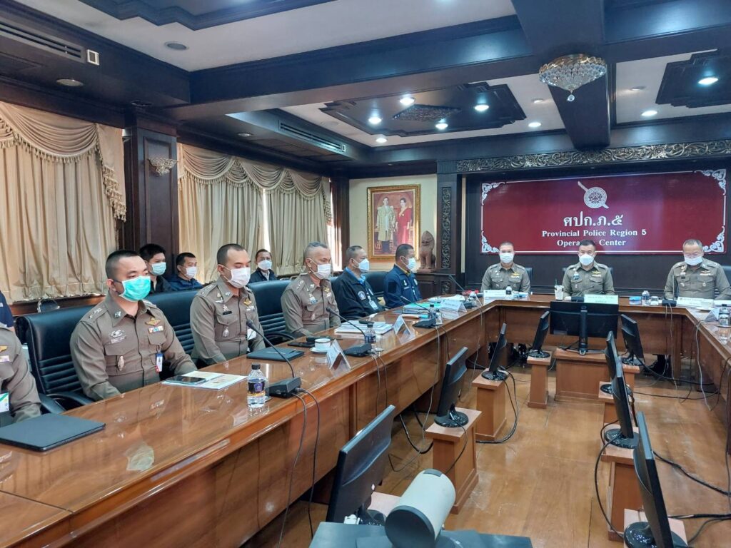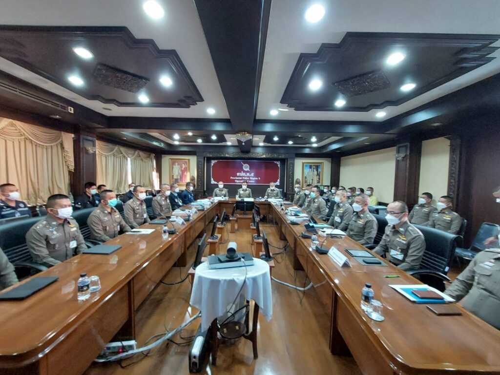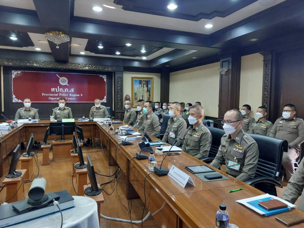 พล.ต.ท.ปิยะ ต๊ะวิชัย ผบช.ภ.5 พร้อมด้วย พล.ต.ต.กฤตธาพล ยี่สาคร รอง ผบช.ภ.5, พล.ต.ต.พิเชษฐ จีระนันตสิน รอง ผบช.ภ.5, พล.ต.ต.ธวัชชัย พงษ์วิวัฒนชัย ผบก.ภ.จว.เชียงใหม่, พล.ต.ต.ปิยะพันธ์ ภัทรพงศ์สินธุ์ ผบก.ภ.จว.น่าน, พล.ต.ต.วรพงศ์ คำลือ ผบก.สส.ภ.5 และเจ้าหน้าที่ที่เกี่ยวข้องร่วมประชุมแถลงแผนปฏิบติการถวายความปลอดภัยพระบาทสมเด็จพระเจ้าอยู่หัว และสมเด็จพระนางเจ้าฯพระบรมราชินี เสด็จพระราชดำเนินมาทรงเปิดศูนย์วิจัยและพัฒนาการเกษตรโครงการหลวง ” ชนกาธิเบศรดำริ ” ณ ศูนย์วิจัยและพัฒนาการเกษตรโครงการหลวง “ชนกาธิเบศรดำริ” อ.เมือง จว.เชียงใหม่ ผ่านระบบทางไกล (VDO Conference) ณ ห้องประชุม 1 ภ.5 อ.เมือง จว.เชียงใหม่ โดยมี พล.ต.ท.ไกรบุญ ทรวดทรง ผู้ช่วย ผบ.ตร. เป็นประธานการประชุม ณ ห้องประชุมติดตามสถานการณ์ (CCOC) ศปก.ร่วมฯ ตร.