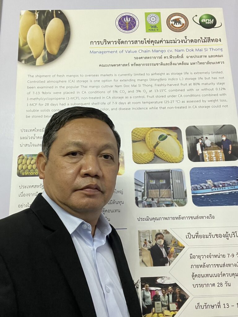 รศ.ดร.พีระศักดิ์ ฉายประสาท จากมหาวิทยาลัยนเรศวร 1 ใน 2 ของนักวิจัยไทยที่ได้รับรางวัลพิเศษในงานนวัตกรรมและเทคโนโลยีทรัพย์สินทางปัญญานานาชาติ หรือ IPITEX 2023 จัดโดย (วช.) ในงานวันนักประดิษฐ์ 2566 หมาดๆ เปิดใจ ผลงานแห่งความภาคภูมิใจส่งออกผลไม้ไทยไปตีตลาดโลก