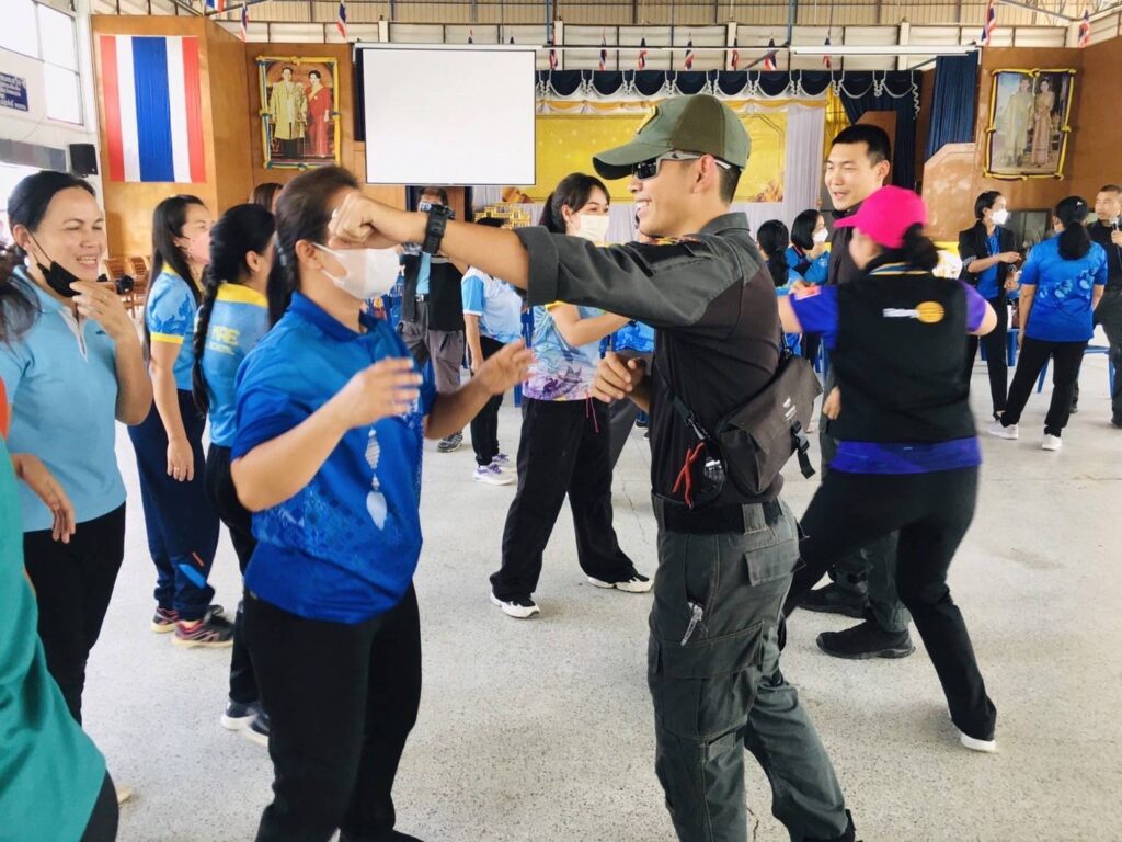 เมื่อวันพุธที่ 8 ก.พ.66 เวลา 09.00-12.00 น.ที่หอประชุมเอนกประสงค์ อ.หนองเรือ จ.ขอนแก่น : พ.อ.ฉัตรชัย สรสิทธิ์ หน.กนผ.กอ.รมน.จังหวัดขอนแก่น พร้อมด้วย สโมสรโรตารีมิตรภาพขอนแก่น นำ โดยนายก นันฐิยา สิริกาญธนานันท์ จัดฝึกอบรมศิลปะป้องกันตัวให้กับครูและผู้ดูแล ศูนย์พัฒนาเด็กเล็ก 24 ศูนย์ ของ อ.หนองเรือ จำนวน 84 ราย