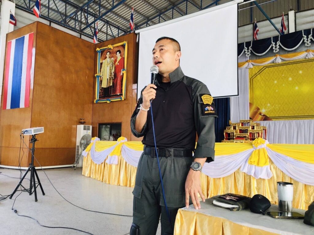 โดยการนี้ นายกองโท พิชัย วันตา นายอำเภอหนองเรือ ให้เกียรติเป็นประธานเปิดงาน การฝึกอบรมศิลปะป้องกันตัวในครั้งนี้ ถอดบทเรียนจากศูนย์พัฒนาเด็กเล็ก ต.อุทัยสวรรค์ อ.นากลาง จ.หนองบัวลำภู ที่ผู้ร้ายกราดยิง ทำให้เกิดการสูญเสียชีวิตเป็นจำนวนมาก โดยการฝึกอบรม มุ่งเน้นให้ผู้รับการฝึกได้รับความรู้และทักษะในการป้องภัยต่างๆ เข้าใจในการระวังภัย หลบหลีก ซ่อนตัว ปกป้องคนที่อยู่ในความดูแล และแจ้งเหตุได้เป็นอย่างดี สามารถนำความรู้ไปปรับใช้เมื่ออาจมีเหตุเกิดขึ้นในอนาคต และรู้วิธีแก้ปัญญาเฉพาะหน้าในเบื้องต้นอย่างทันท่วงที