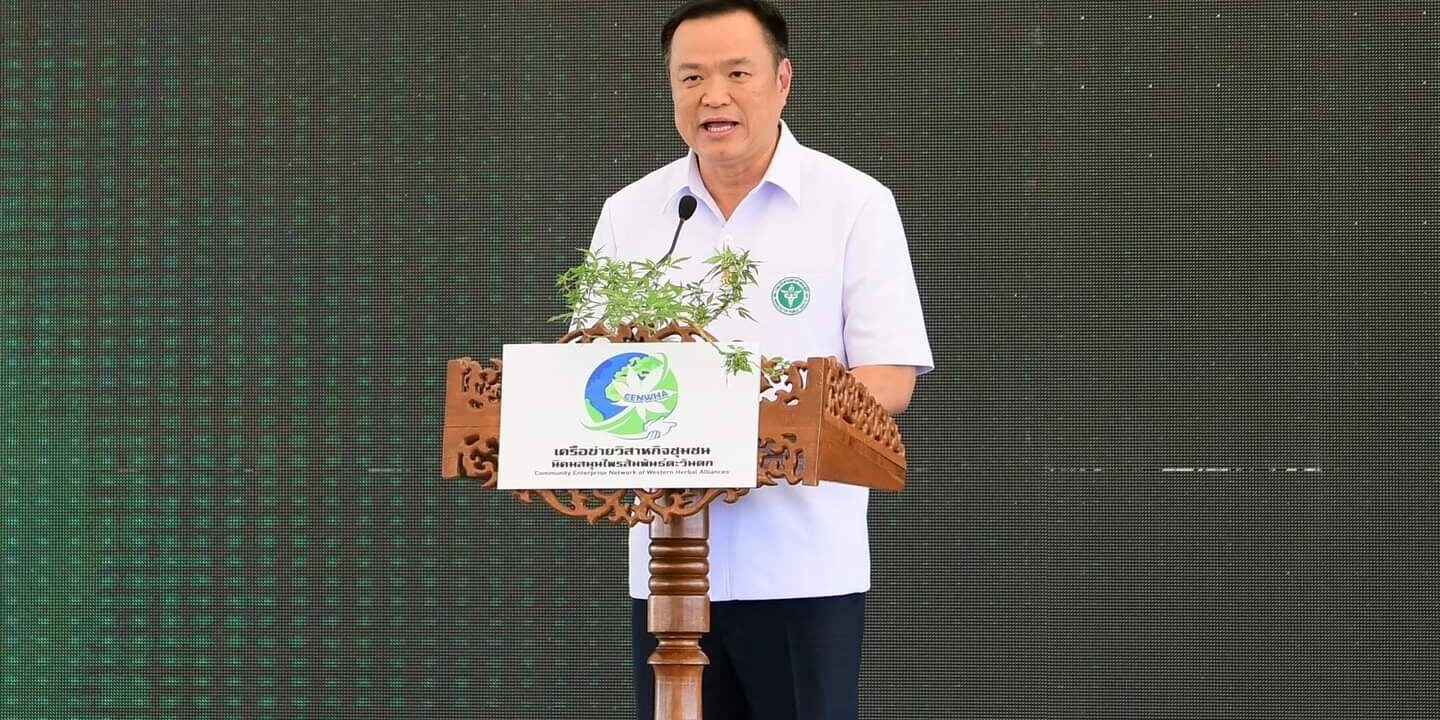 วันนี้ (10 กุมภาพันธ์ 2566) ที่ วิสาหกิจชุมชนนิคมสมุนไพรสัมพันธ์ตะวันตก จังหวัดกาญจนบุรี นายอนุทิน ชาญวีรกูล รองนายกรัฐมนตรีและรัฐมนตรีว่าการกระทรวงสาธารณสุข เป็นประธานเปิดการสัมมนาวิชาการ ยกระดับการเพาะปลูกกัญชาทางการแพทย์สู่มาตรฐานสากล และปาฐกถาพิเศษ เรื่อง “นโยบายกัญชาทางการแพทย์สู่เศรษฐกิจสุขภาพ” พร้อมเปิดป้ายวิสาหกิจชุมชนนิคมสมุนไพรสัมพันธ์ตะวันตก และศูนย์นวัตกรรมกัญชา เพื่อการแพทย์แห่งประเทศไทย โดยมี ร้อยโท ทศพล ไชยโกมินทร์ ผู้ว่าราชการจังหวัดกาญจนบุรี นายแพทย์โอภาส การย์กวินพงศ์ ปลัดกระทรวงสาธารณสุข นายแพทย์ธงชัย เลิศวิไลรัตนพงศ์ อธิบดีกรมการแพทย์แผนไทยและการแพทย์ทางเลือก คณะผู้บริหาร และหน่วยงานที่เกี่ยวข้อง เข้าร่วมงาน