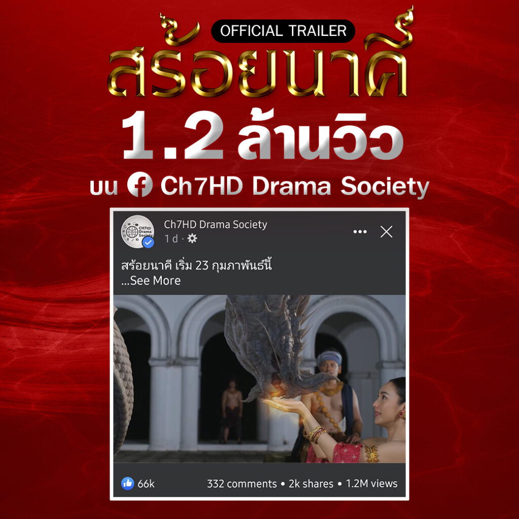 เรียกว่า ปังสุดพลัง ได้รับกระแสตอบรับจากแฟนละครสุดแรงตั้งแต่ยิงทีเซอร์แรกกันเลยทีเดียว สำหรับ สร้อยนาคี ละครดราม่าลึกลับฟอร์มใหญ่ จากค่าย มุมใหม่ หลังจากช่อง 7HD ปล่อยทีเซอร์ว่าพร้อมออกอากาศให้แฟน ๆ ได้ชมปุ๊บ ก็ได้รับเสียงฮือฮาทันที การันตีได้จากยอดชมบน Facebook : Ch7HD Drama Society ทะลุ 1.2 ล้านวิว ใน 48 ชั่วโมง