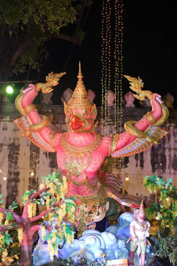 ทุกท่านจะตื่นตาตื่นใจไปกับประติมากรรมแกะสลัก เหล่าสรรพสัตว์ในวรรณคดี รายล้อมเรือครุฑยุคนาค นารายณ์ทรงสุบรรณ เสมือนหนึ่ง มาชื่นชมในพระบารมีสมเด็จพระนารายณ์มหาราช และสถาบันกษัตราที่ยิ่งใหญ่ ทุกๆ พระองค์