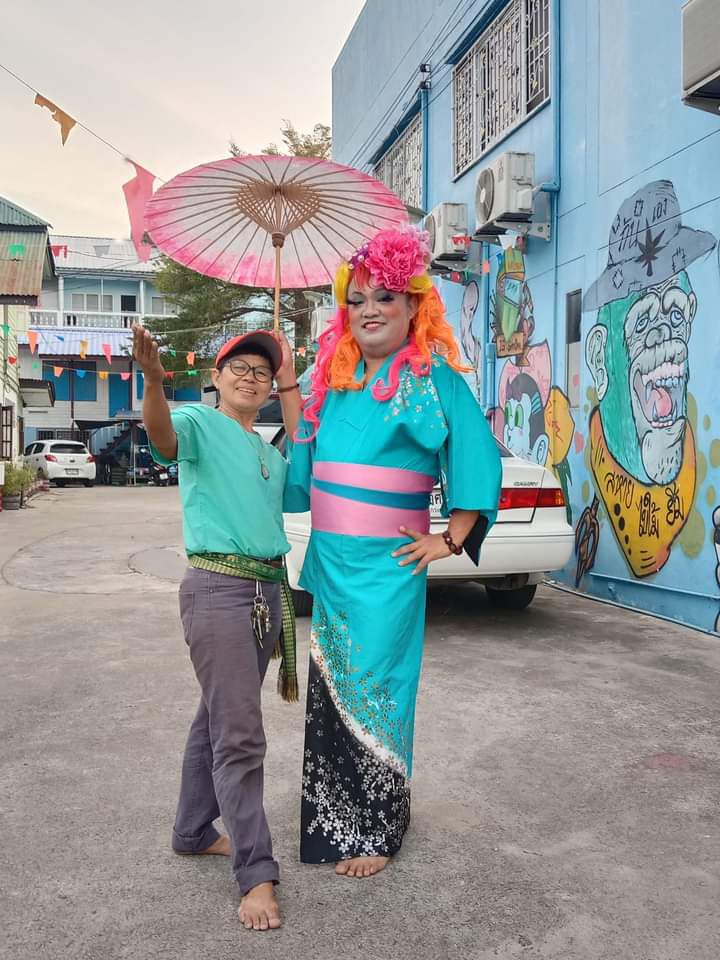 เจ๊กิ่ง นั่นเองเพื่อส่งเสริมวัฒนธรรมไทยเลยนำพนักงานสาวสวยของร้านสกายเวย์ พร้อมใจกันแต่งไทยทั้งร้าน