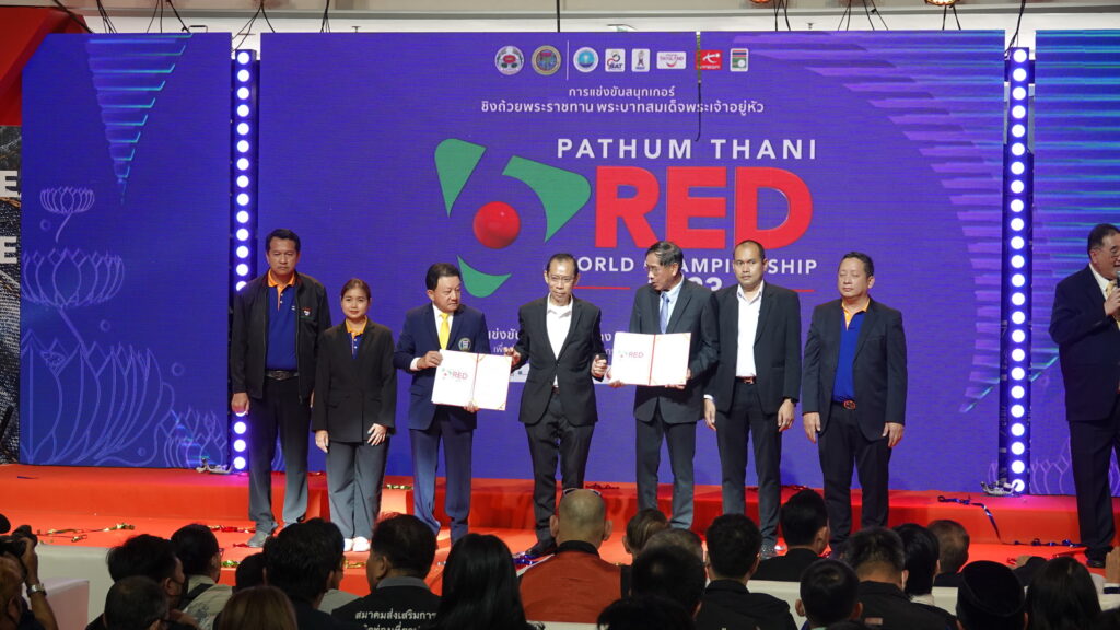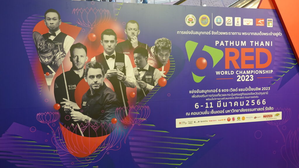 การแข่งขันสนุกเกอร์ ” Pathum Thani 6 Red World Championship 2023″ ชิงถ้วยพระราชทาน วันที่ 6-11 มี.ค.66 ที่สนามแข่งขันธรรมศาสตร์คอนเวนชั่น เซ็นเตอร์ มหาวิทยาลัยธรรมศาสตร์ ศูนย์รังสิต ตำบลคลองหนึ่ง อำเภอคลองหลวง จังหวัดปทุมธานี มีนักสนุกเกอร์ระดับโลกมากที่สุดในประวัติศาสตร์นับตั้งแต่มีการแข่งขันสนุกเกอร์ 6 แดงในเมืองไทย โดยมีนักสนุกเกอร์ไทยร่วมประลองมากถึง 8 คน เพื่อชิงเงินรางวัลรวมสูงถึง 11 ล้านบาท จังหวัดประทุมธานีเตรียมเปิดเมืองให้ชาวโลกได้รู้จักของดีเมืองปทุมฯ เพื่อส่งเสริมเที่ยวและกระตุ้นเศรษฐกิจของจังหวัดผ่านจากกรถ่ายทอดสไปกว่า 200 ประเทศ มีเหล่านักสนุกเกอร์อาชีพชื่อดังของโลกมารวมตัวกันคับคั่ง ประกอบด้วย สตีเฟน แม็คไกวร์, รอนนี่ โอซุลลิแวน, จัดด์ ทรัมพ์, มาร์ค เซลบี้, จอห์น ฮิกกินส์, มาร์ค วิลเลียมส์, ฌอน เมอร์ฟีย์, แบรี่ ฮอว์กินส์, ลูก้า บรีเซล, สจ๊วต บิงแฮม, มาร์ค อัลเลน, โฮเซน วาเฟย์, ริคกี้ วอลเด้น, อาลี คาร์เตอร์, จิมมี่ โรเบิร์ตสัน, คริส เวคลิน, จาง อันตะ, ติง จนฮุย, เคน โดเฮร์ตี้, จิมมี่ ไวท์, อองเดรส์ เปตรอฟ, มาห์มูด แอล ฮารี่ดี้ และ สแตน มูดี้ พร้อมด้วย 8 สอยคิวตัวแทนประทศไทย ประกอบด้วย “หมู ปากน้ำ” นพพล แสงคำ, “เอฟวัน” เทพไซยา อุ่นหนู, “แจ็ค สระบุรี” เดชาวัต พุ่มแจ้ง, “มิ้ง สระบุรี” ณัชชารัตน์ วงศ์หฤทัย,”นุ้ก สงขลา” กฤษณัส เลิศสัตยาทร, “นุ๊ก คอนหวัน” ปรมินทร์ ด่านจิรกุล, “ต๋อง ศิษย์ฉ่อย” วัฒนา ภู่โอบอ้อม และ “ซันนี่ สายล่อฟ้า” อรรคนิธิ ส่งเสริมสวัสดิ์