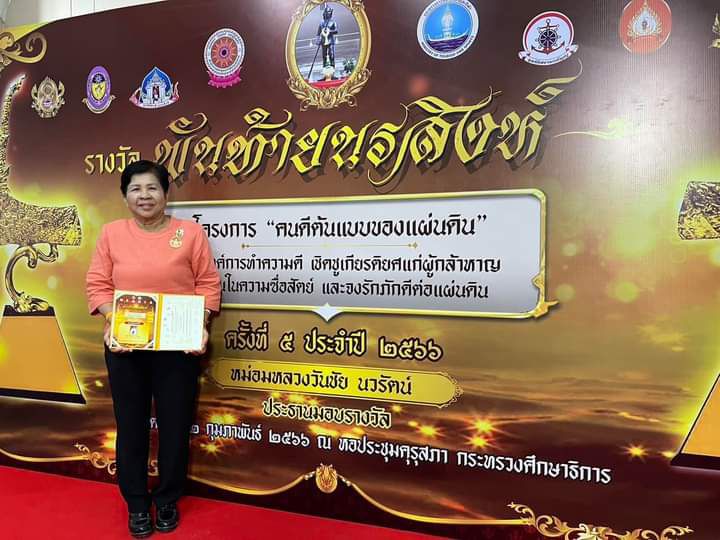 เข้ารับโล่รางวัลเกียรติคุณ (ระดับชาติ ระดับชาติจาก หม่อมหลวง วันชัย นวรัตน์) ณ หอประชุมคุรุสภา กระทรวงศึกษาธิการ กรุงเทพฯ ซึ่งเป็นการมอบรางวัลพันท้ายนรสิงห์ สาขาบุคคลผู้ทำคุณประโยชน์ต่อประเทศชาติ
