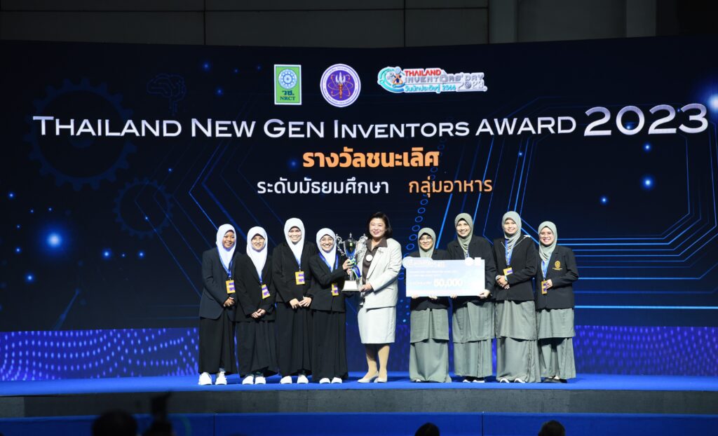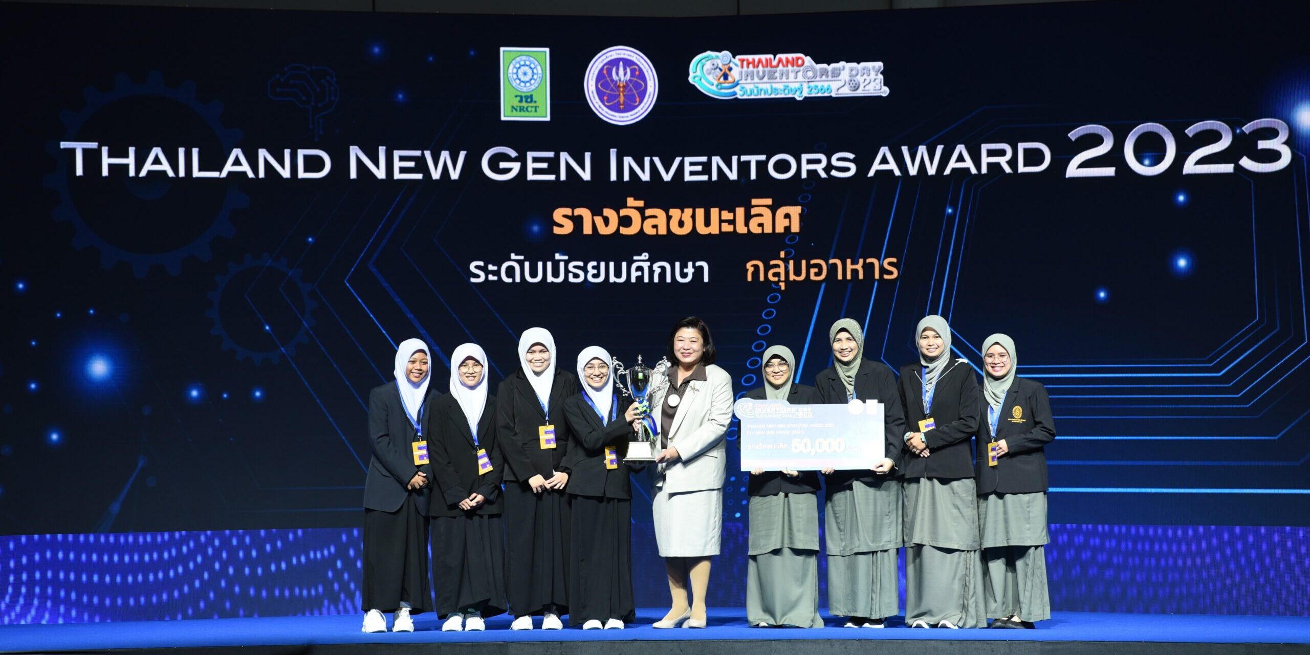 เมื่อวันที่ 6 กุมภาพันธ์ 2566 ที่ผ่านมา สำนักงานการวิจัยแห่งชาติ (วช.) กระทรวงการอุดมศึกษา วิทยาศาสตร์ วิจัย และนวัตกรรม (อว.) มอบรางวัลสิ่งประดิษฐ์ระดับเยาวชน Thailand New Gen Inventors Award : I-New Gen Award 2023 ระดับมัธยมศึกษา รางวัลชนะเลิศ ด้านอาหาร ให้กับผลงาน “ผลิตภัณฑ์ผงกำจัดพยาธิในอาหารจากใบข่าอ่อนธรรมชาติ (Boega)” จากโรงเรียนธรรมวิทยามูลนิธิยะลา จังหวัดยะลา ในพิธีปิดงานวันนักประดิษฐ์ ประจำปี 2566 ณ ศูนย์นิทรรศการ และการประชุมไบเทค บางนา กรุงเทพฯ