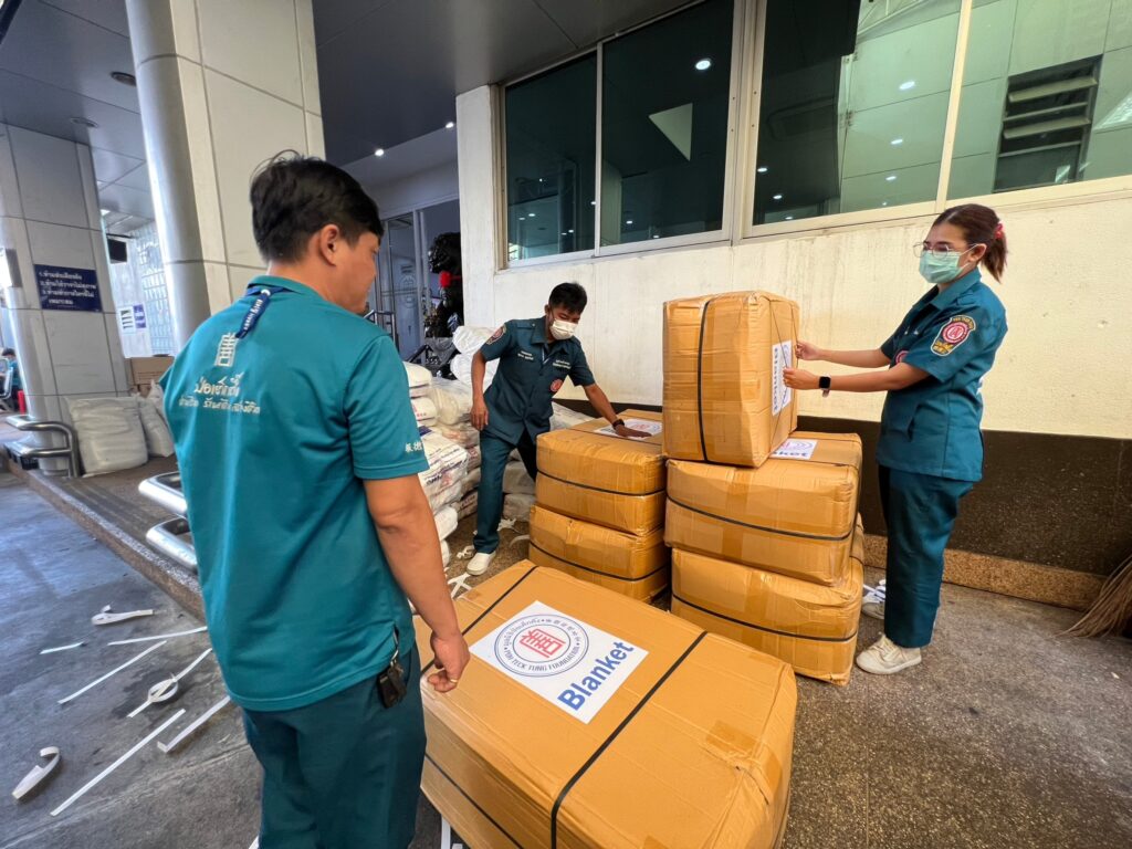 โดยเมื่อวันเสาร์ที่ 11 กุมภาพันธ์ 2566 ที่ผ่านมา นายอรัณย์ โตทวด ผู้จัดการใหญ่มูลนิธิฯ นำทีมฝ่ายสังคมสงเคราะห์ ส่งมอบถุงซิปบรรจุร่างผู้เสียชีวิต จำนวน 2,000 ใบ พร้อมด้วยเสื้อผ้าสำเร็จรูป จำนวน 4,240 ตัว ให้กับกรมกิจการพลเรือนทหาร กองบัญชาการกองทัพไทย เพื่อสนับสนุนภารกิจ ณ กองบัญชาการกองทัพไทย กรมกิจการพลเรือนทหาร (อาคาร 6) ถนนแจ้งวัฒนะ เขตหลักสี่ กรุงเทพฯ