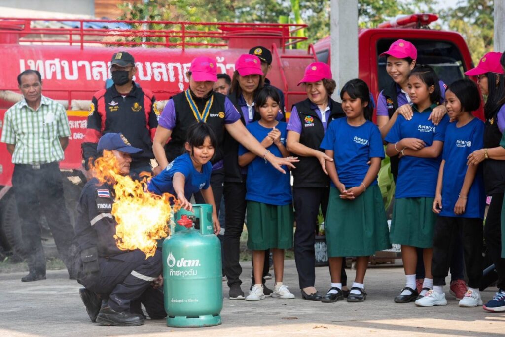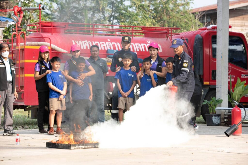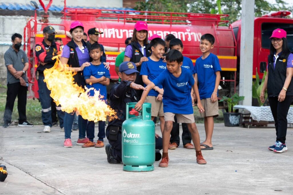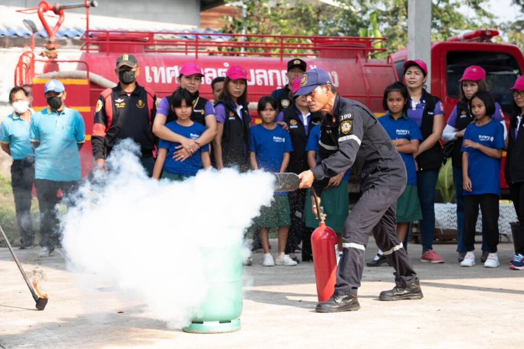 เมื่อวันพุธที่ 8 กุมภาพันธ์ 2566 เวลา 14.00 น.สโมสรโรตารีมิตรภาพขอนแก่น นำโดยนายกนันฐิยา สิริกาญธนานันท์ และท่านสมาชิกภาพ ร่วมกับเทศบาลกุดกว้าง อ.หนองเรือ โดยท่านนายกชัยวัฒน์ รัตนคำมูล ทีม ครูฝึก -วิทยากร จากฝ่ายป้องกันและบรรเทาสาธารณภัยเทศบาลนครขอนแก่น และท่านอนันตวิทย์ พุทธา ผู้อำนวยการโรงเรียน ได้ร่วมบูรณาการจัดอบรมหลักสูตร สอนน้อง ป้องกันอัคคีภัย ที่โรงเรียนบ้านขนวนนคร ต.กุดกว้าง อ.หนองเรือ จ.ขอนแก่น โดยถอดบทเรียนมาจากการเกิดไฟไหม้ในค่ายลูกเสือที่ อ.โนนสัง จ.หนองบัวลำภู ที่ผ่านมา โดยในการฝึกอบรมในครั้งนี้ ครูฝึกได้ให้ความรู้เบื้องต้นความเข้าใจเกี่ยวกับชนิดของไฟ วิธีการดับแต่ละชนิดและทุกขั้นตอนเกี่ยวกับสาเหตุ วิธีการป้องกัน และการแก้ปัญหาเฉพาะหน้าเมื่อเกิดไฟไหม้ขึ้น พร้อมทั้งให้เด็กๆได้ลงมือปฏิบัติการระงับเหตุเพลิงไหม้ เพื่อป้องกันไม่ให้เกิดรุกรามสร้างความเสียหายต่อทรัพย์สินและอันตรายต่อชีวิต
